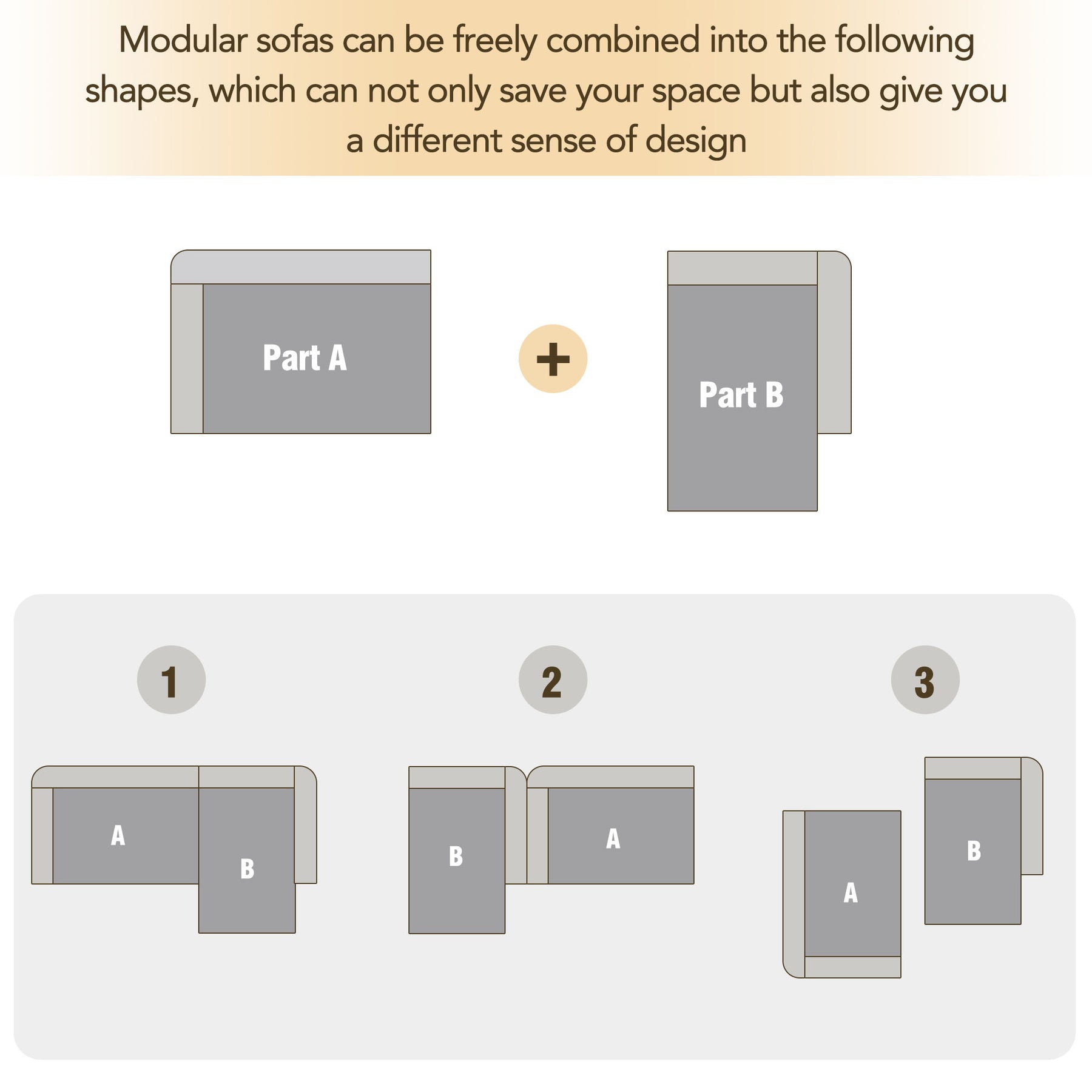 Modular Combination Living Room Sofa Set, Modern Minimalist Sofa, Living Room Upholstered Sofa Bed, Bedroom, 2 Pieces Computer Free Combination, L - Shaped - Beige