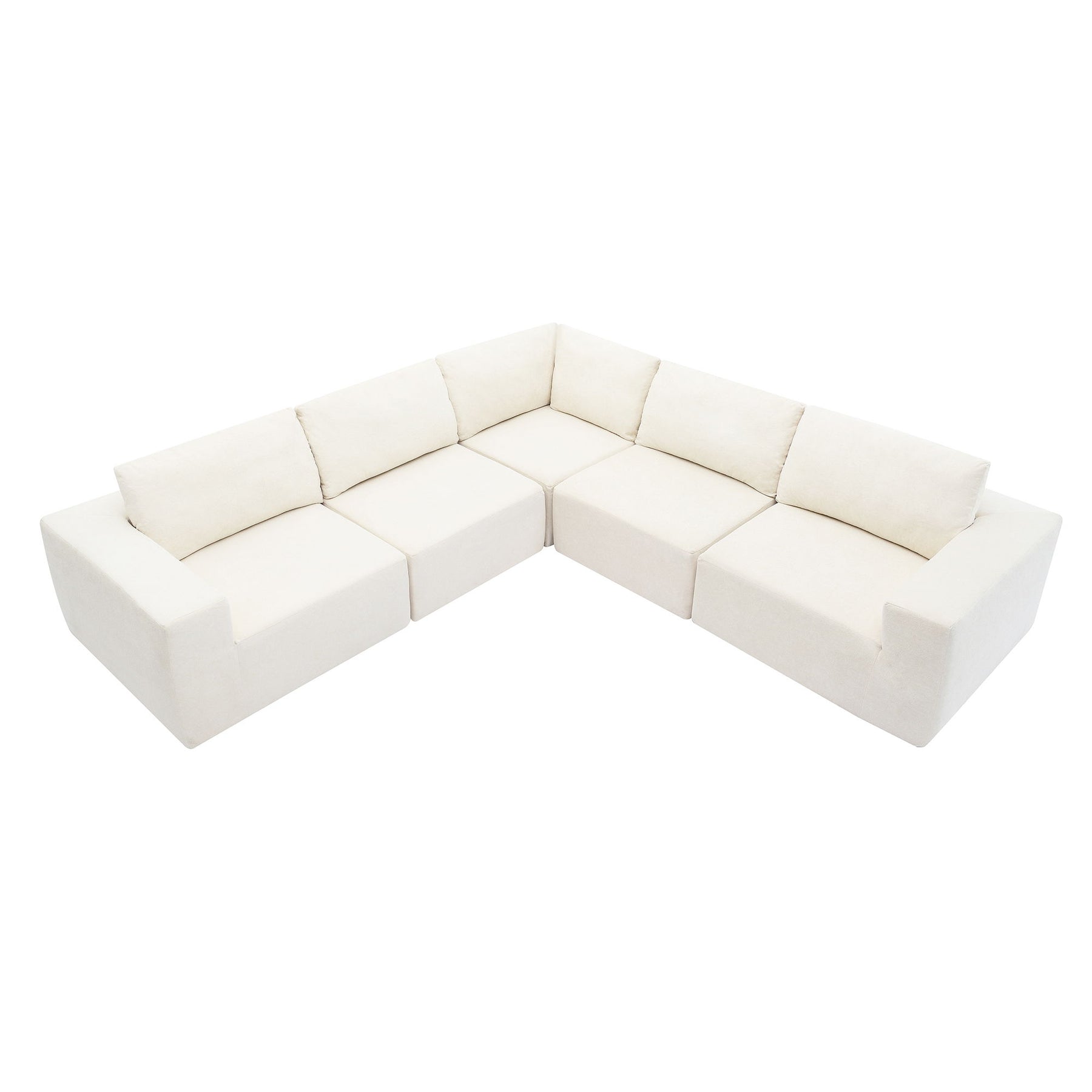 Modular L Shaped Sectional Sofa, Luxury Floor Couch Set, Upholstered Indoor Furniture, Foam - Filled Sleeper Sofa Bed 5 Pieces Free Combination - Beige