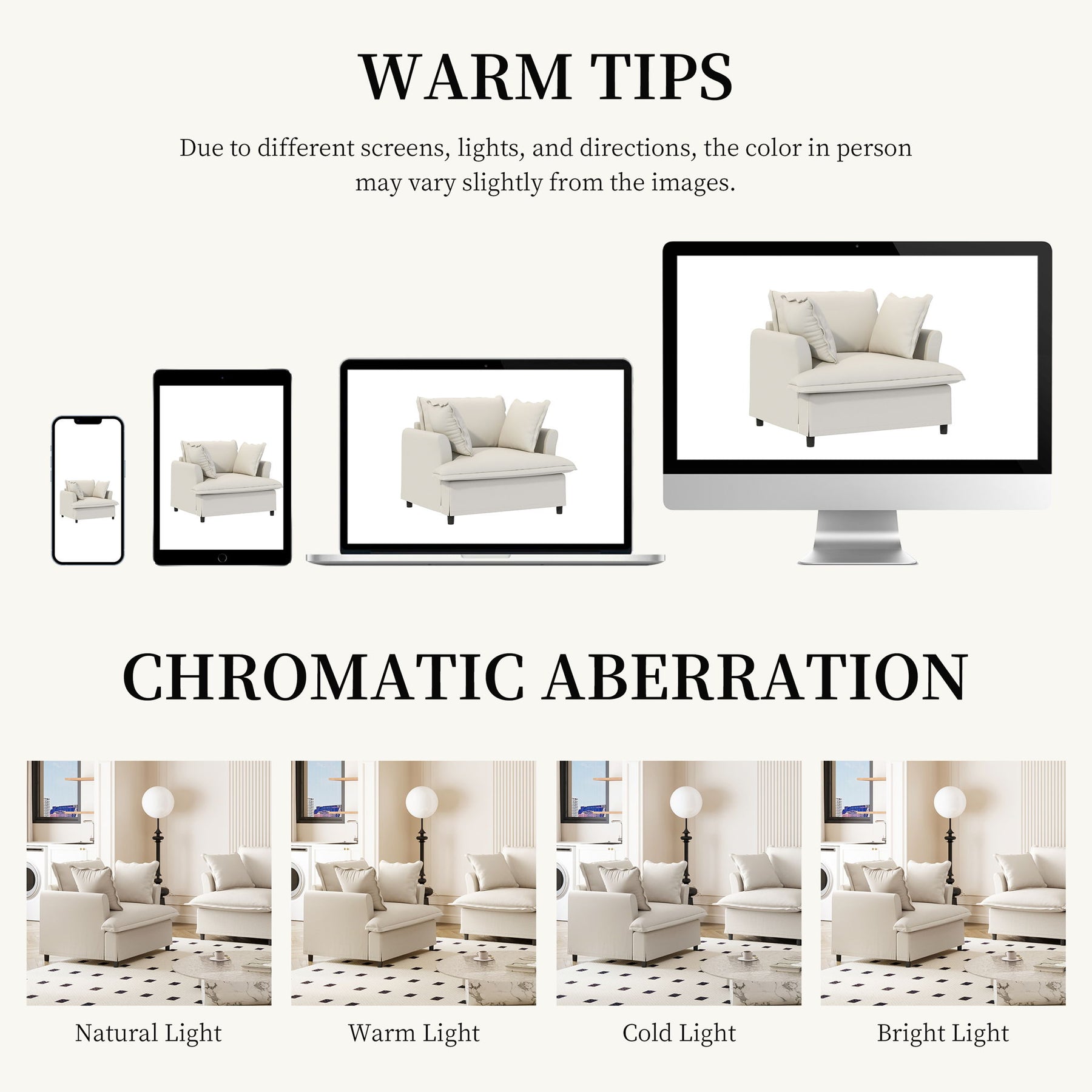 Oversized Single Seat Sofa Module For Modular Sectional Wide Seat, Armchair With Pillows Modern Upholstered Comfy Single Couch Lounge - Beige
