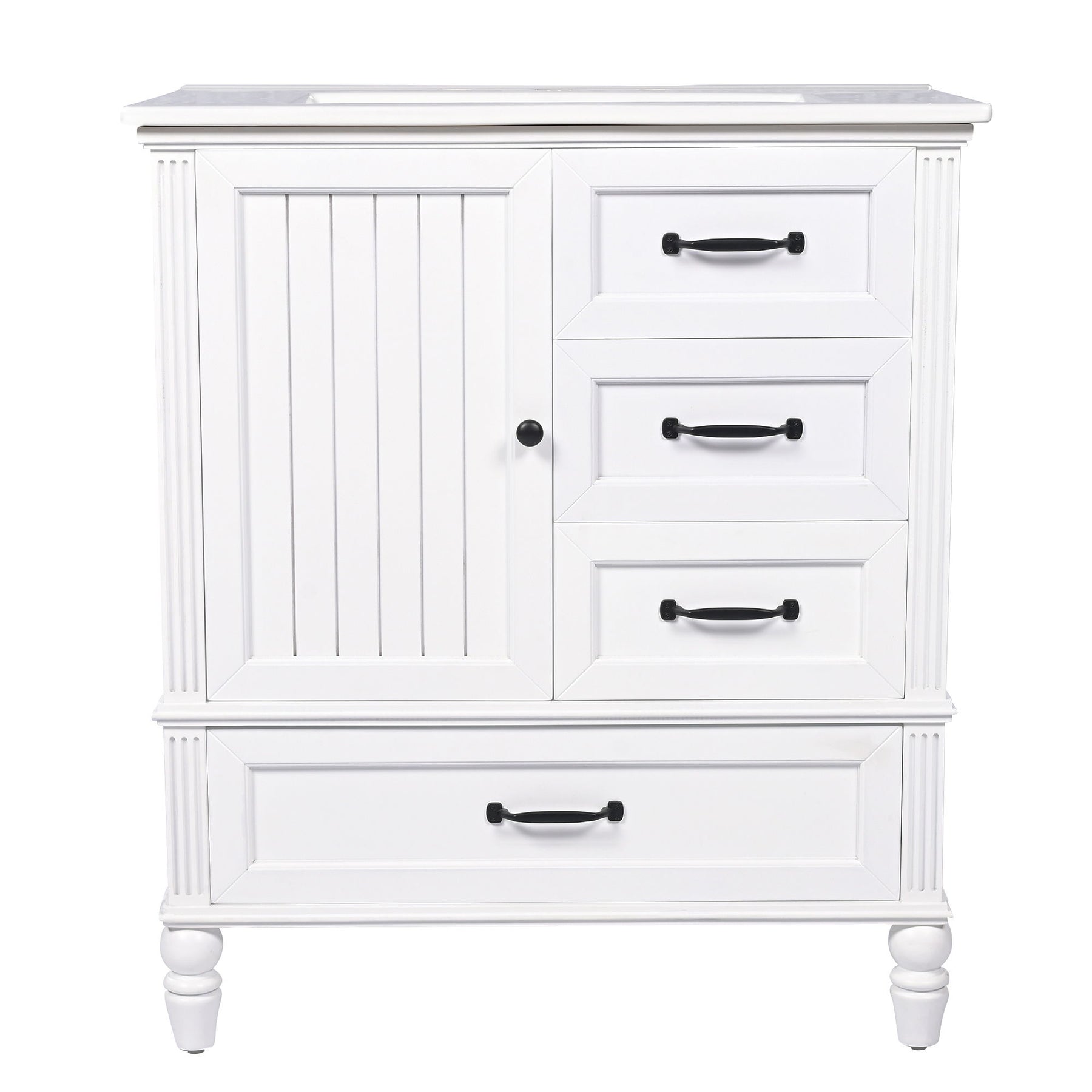 30" Bathroom Vanity With Sink, 3 Drawers, Adjustable Feet - White