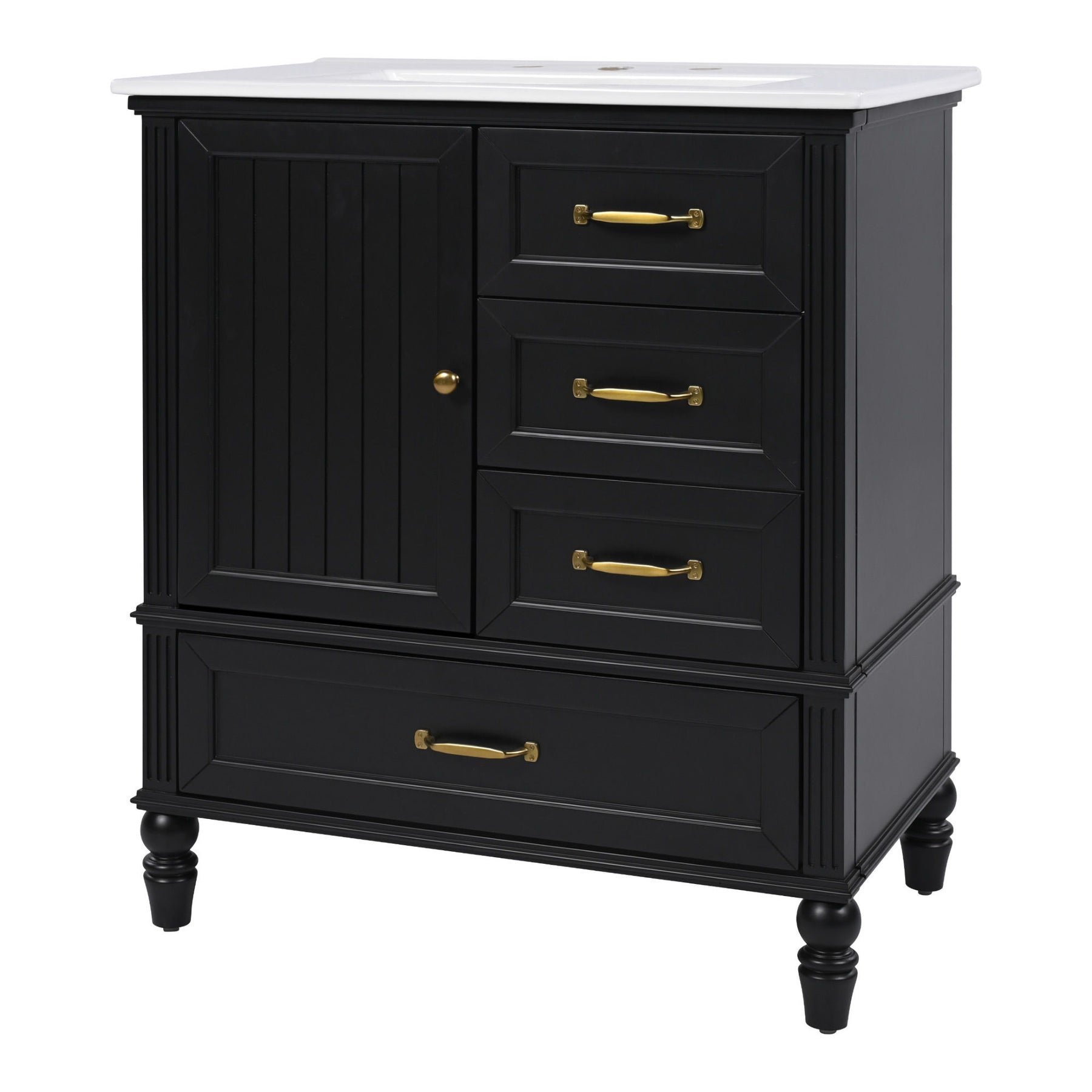 30" Bathroom Vanity With Sink, Cabinet With Door & 3 Drawers - Black