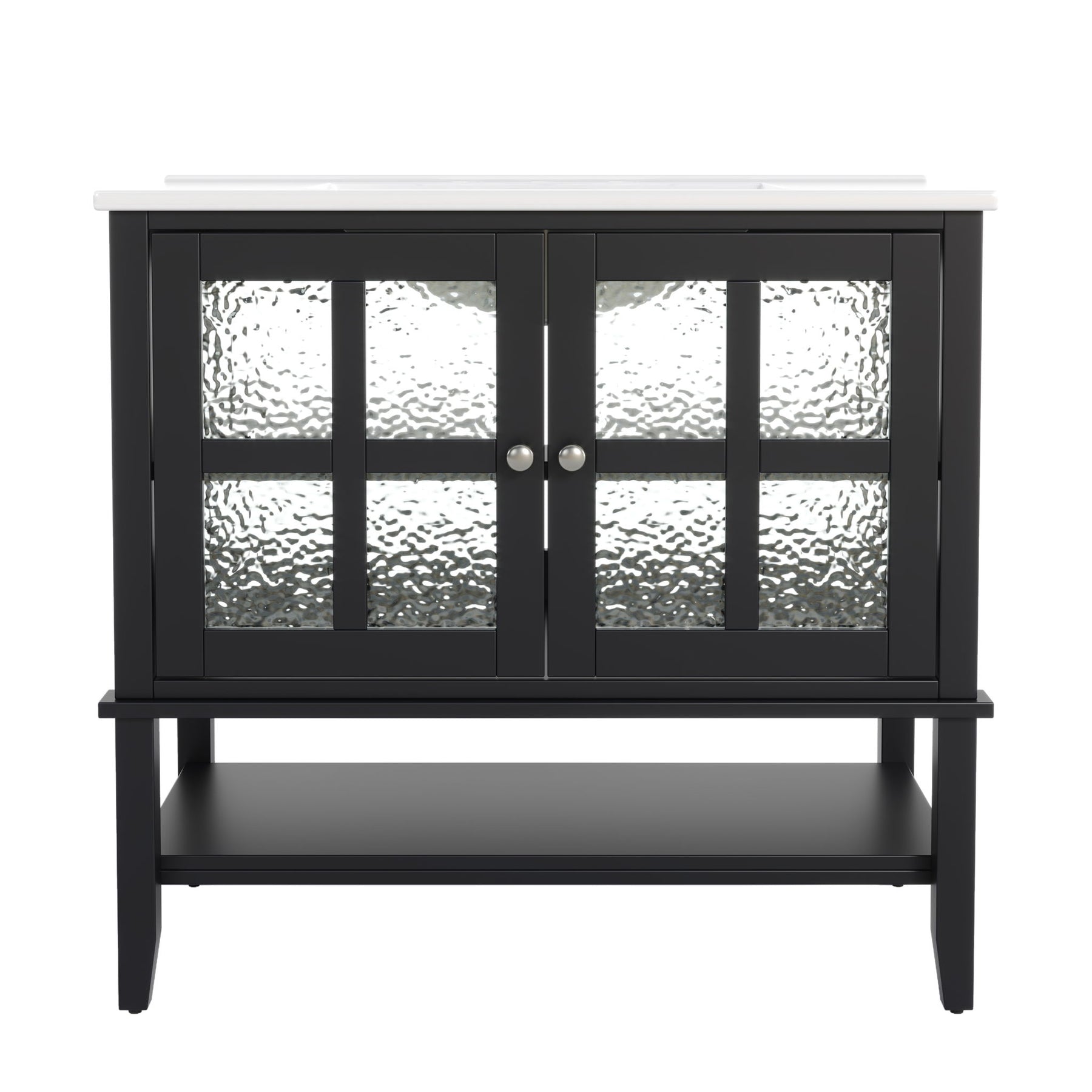 Bathroom Vanity With Sink, Adjustable & Open Shelf, Soft Close Hinges - Black