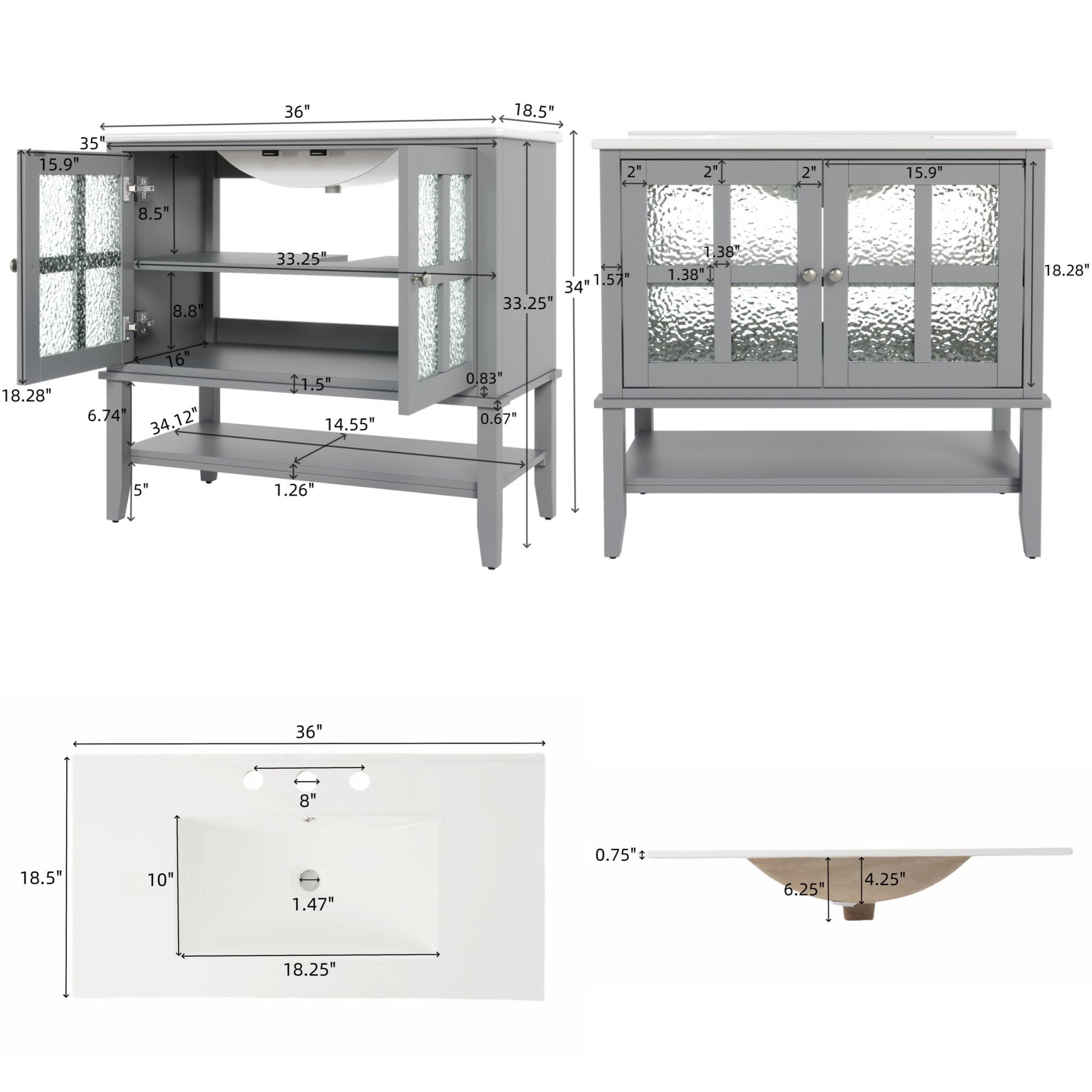 Bathroom Vanity With Sink, Adjustable & Open Shelf, Soft Close Hinges - Gray