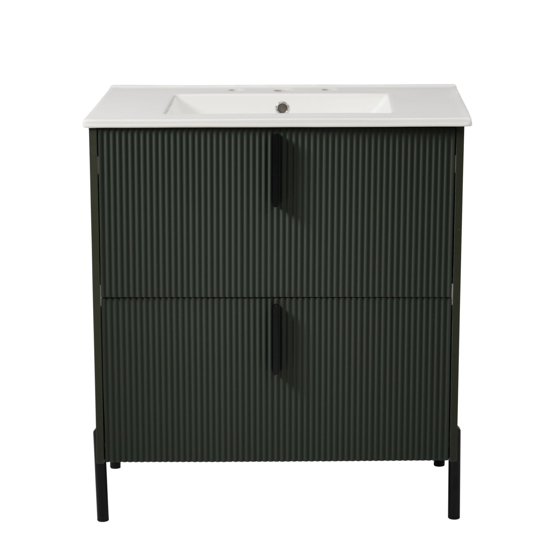 Fluted Bathroom Vanity With Sink, Full Extension Soft Close Drawers - Green