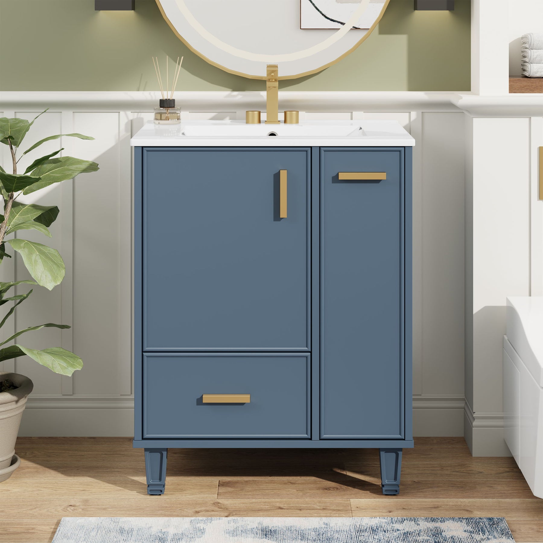 Solid Wood And 24" Bathroom Vanity With Sink, Deep Drawer, Door Shelf, 2 Tier Basket - White
