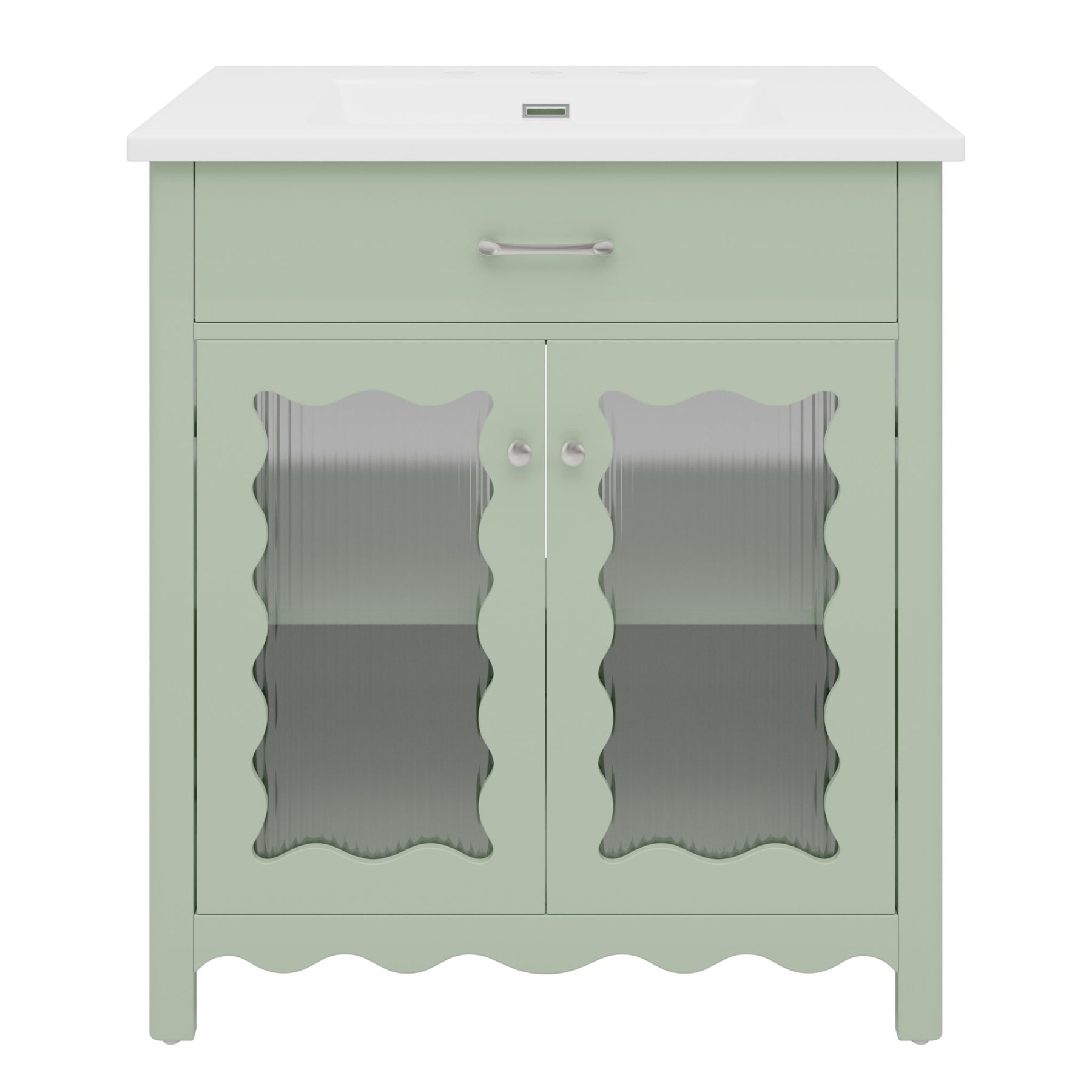 Bathroom Vanity With Glass Doors, Soft Close Hinges - Green