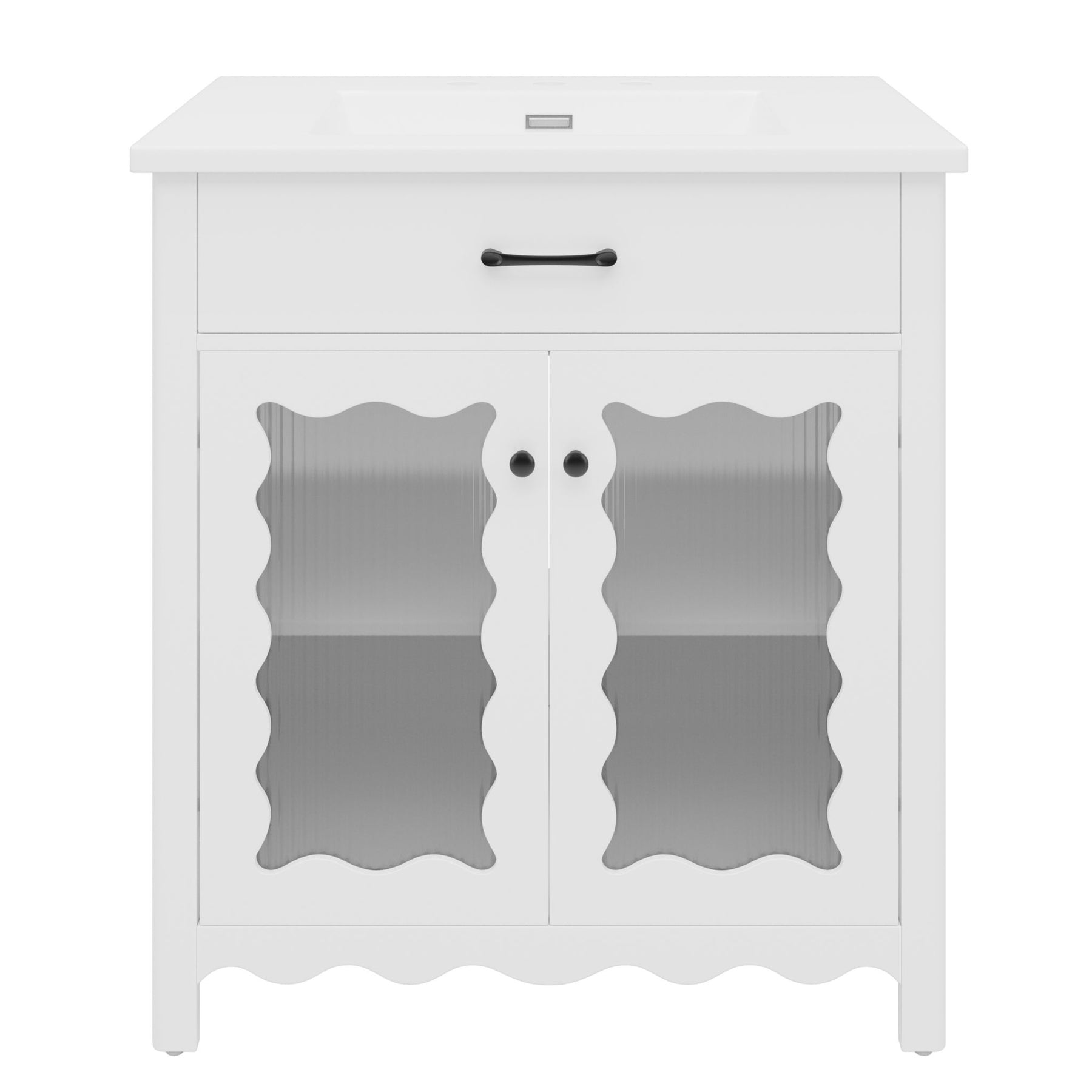 Bathroom Vanity With Glass Doors, Soft Close Hinges - White