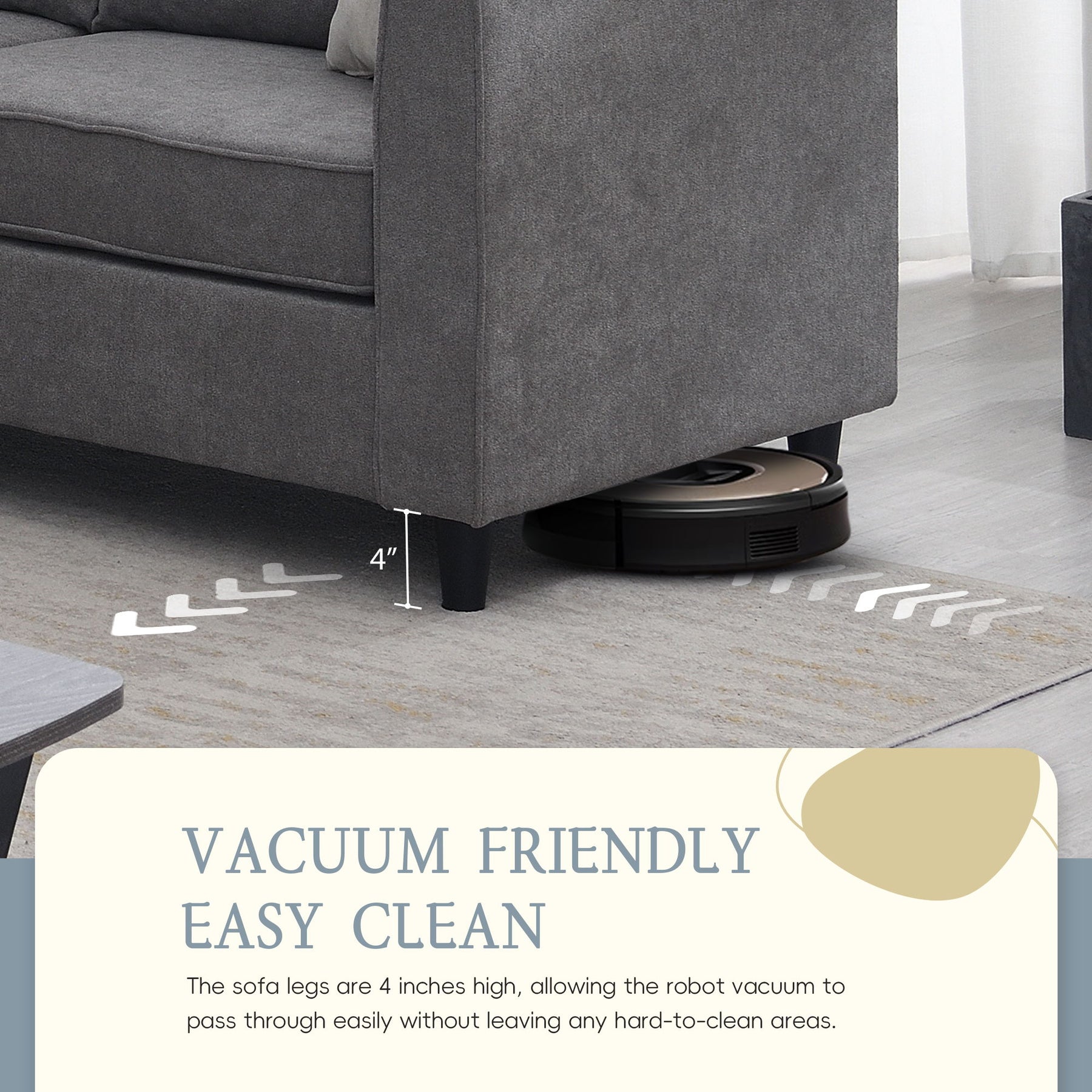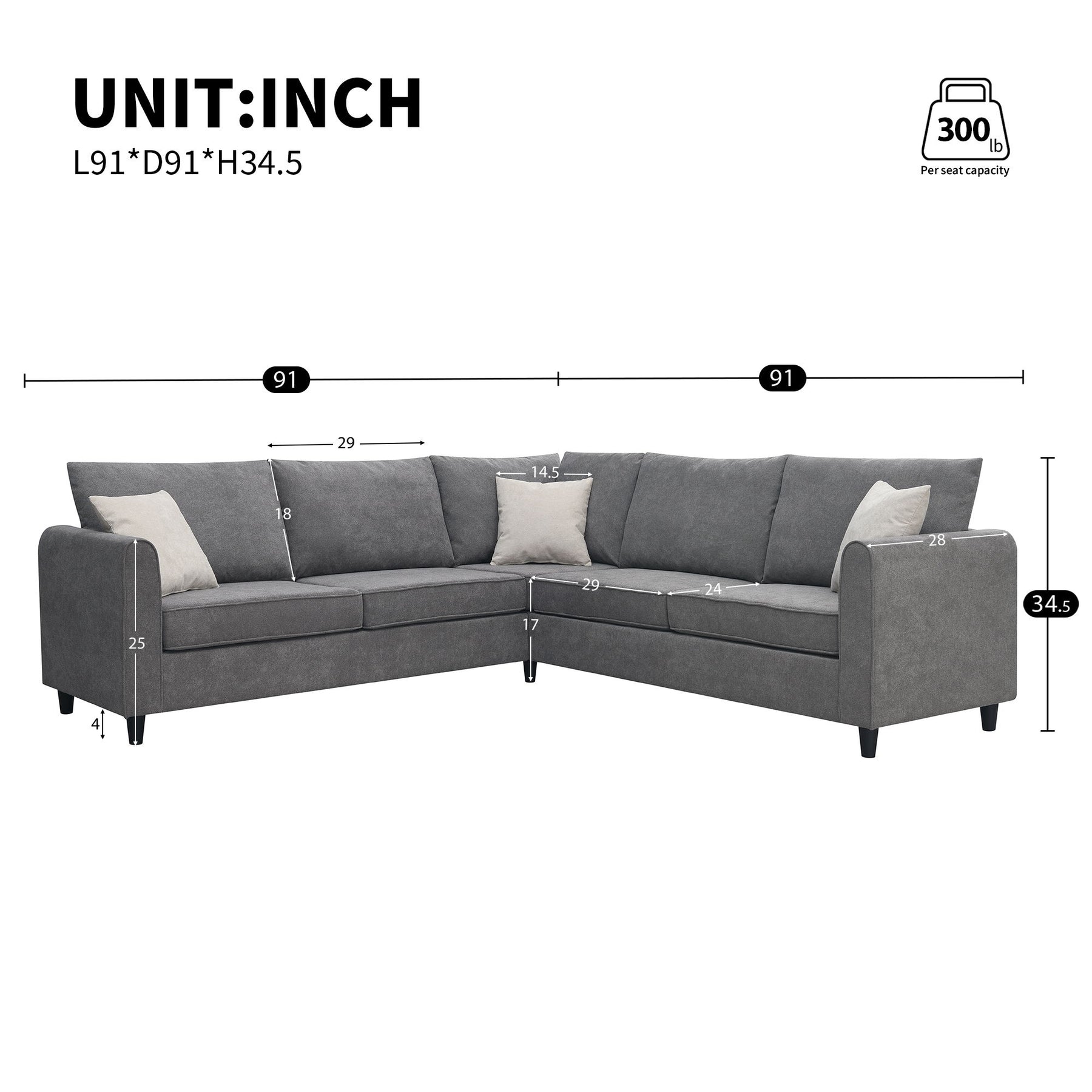 - Convenient Assembly: L-shape sofa is easy to assemble with included instructions and tools. Plastic legs and semi-attached cushions simplify the process.