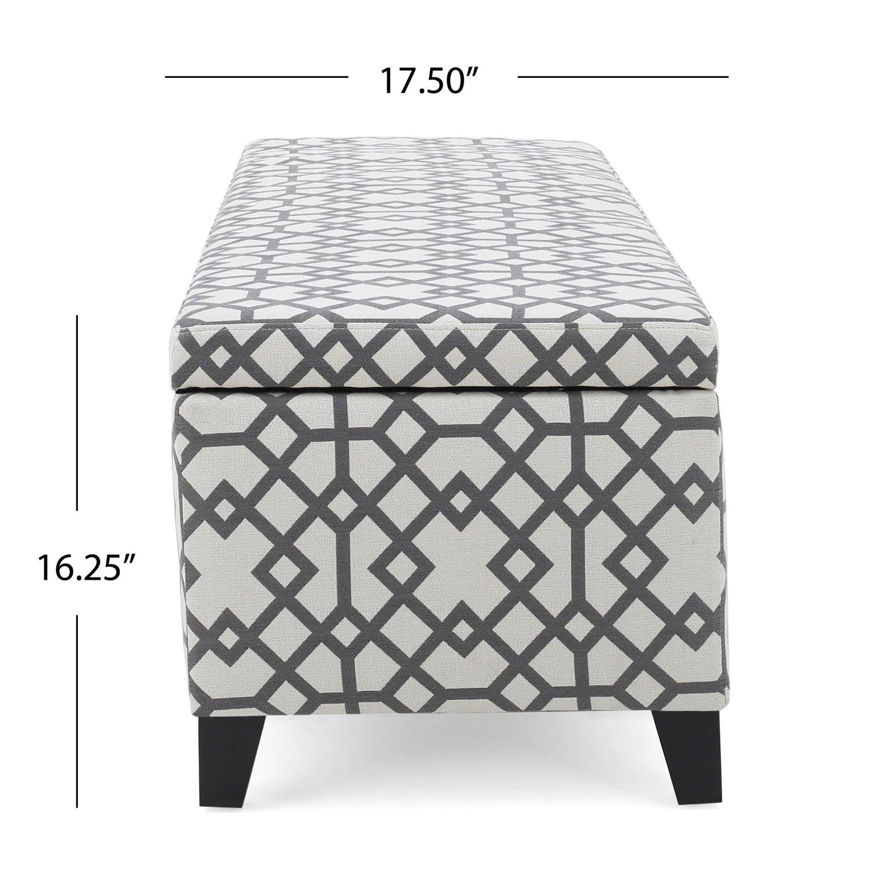 - POLYESTER BLEND UPHOLSTERY: Wrapped in a polyester blend with a geometric pattern in neutral gray and white tones, adding a modern touch to any decor.