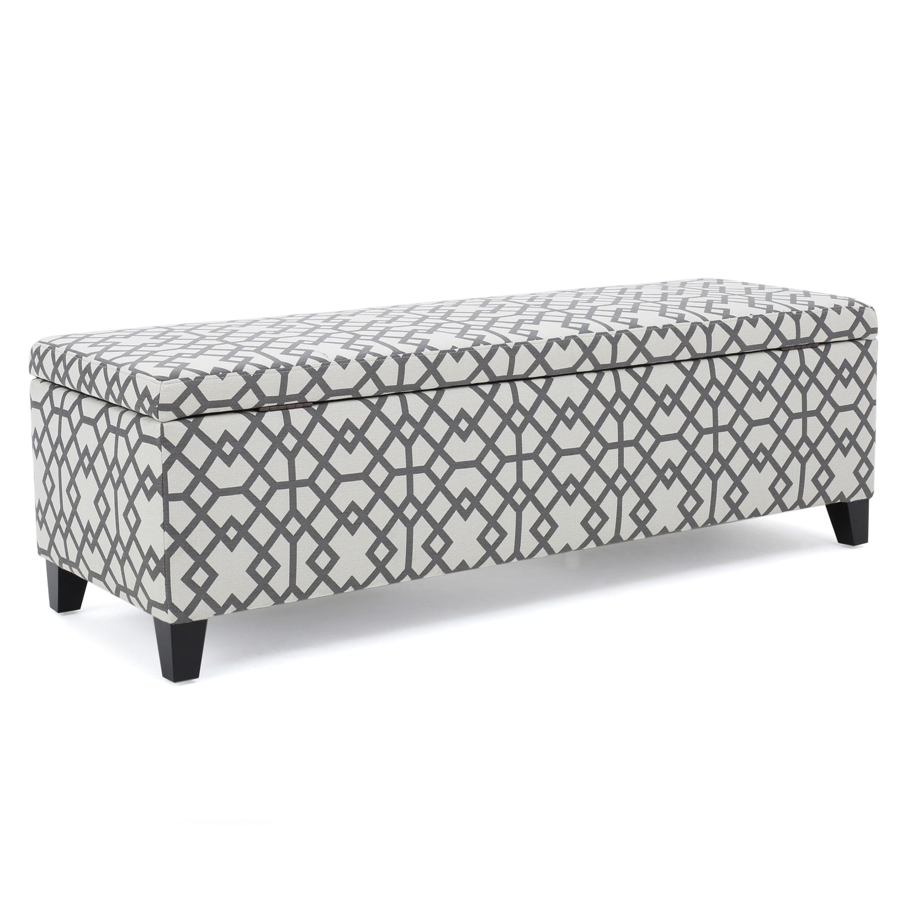 Quotient - Upholstered Storage Ottoman With Tapered Block Feet - Gray / White