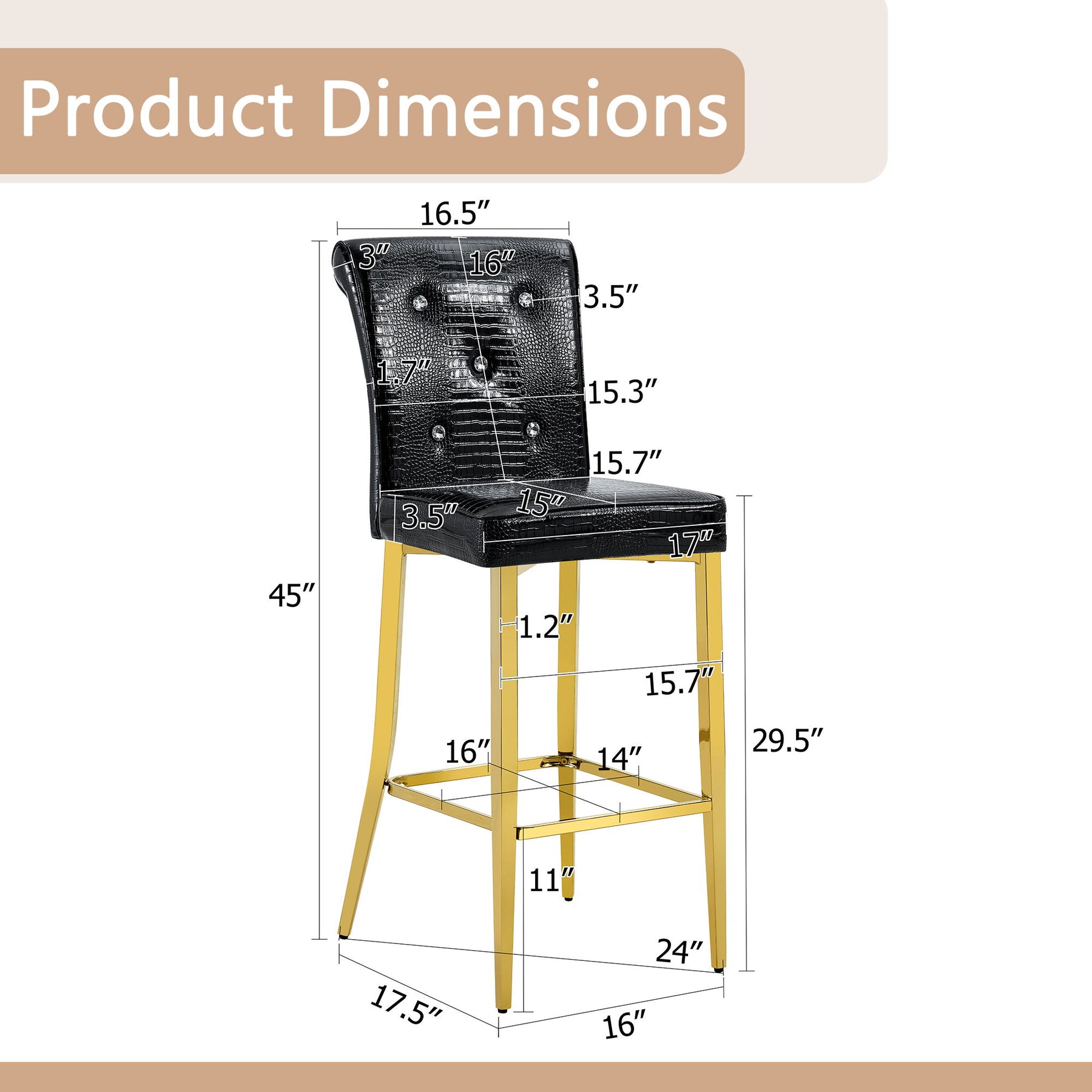 Bar Chairs With Crystal Clasp Design (Set of 2) - Black / Gold