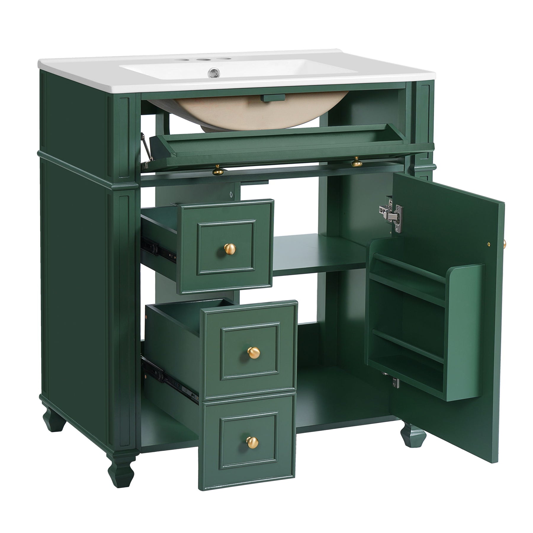 Bathroom Vanity Cabinet With Sink, Storage Cabinet With Soft Close Doors With Door Organizer - Green