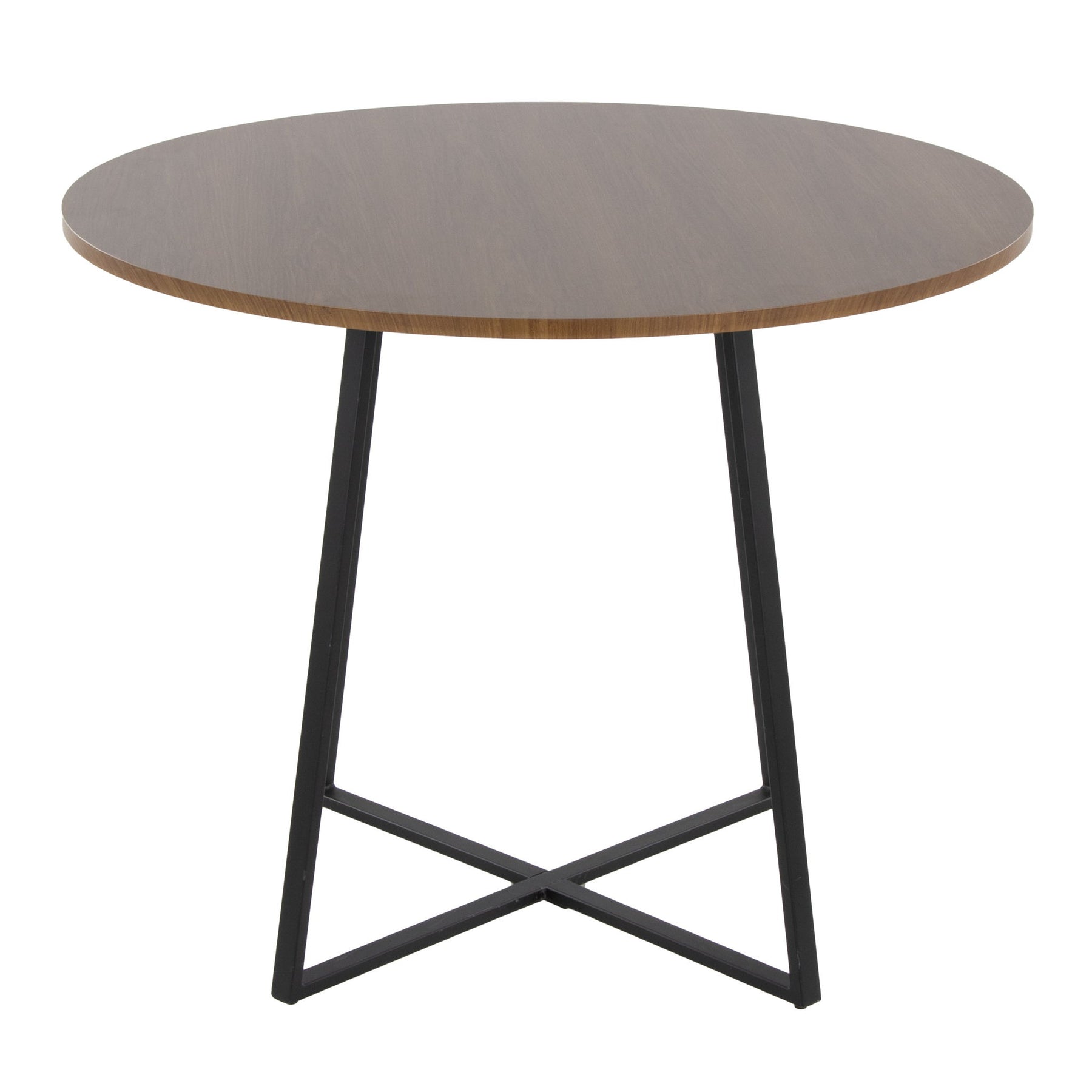 - Product Specifications: The table is fixed at dining height with a round wooden top and black metal base. It is intended for indoor use only, with a weight limit of 100 lbs, and requires assembly.