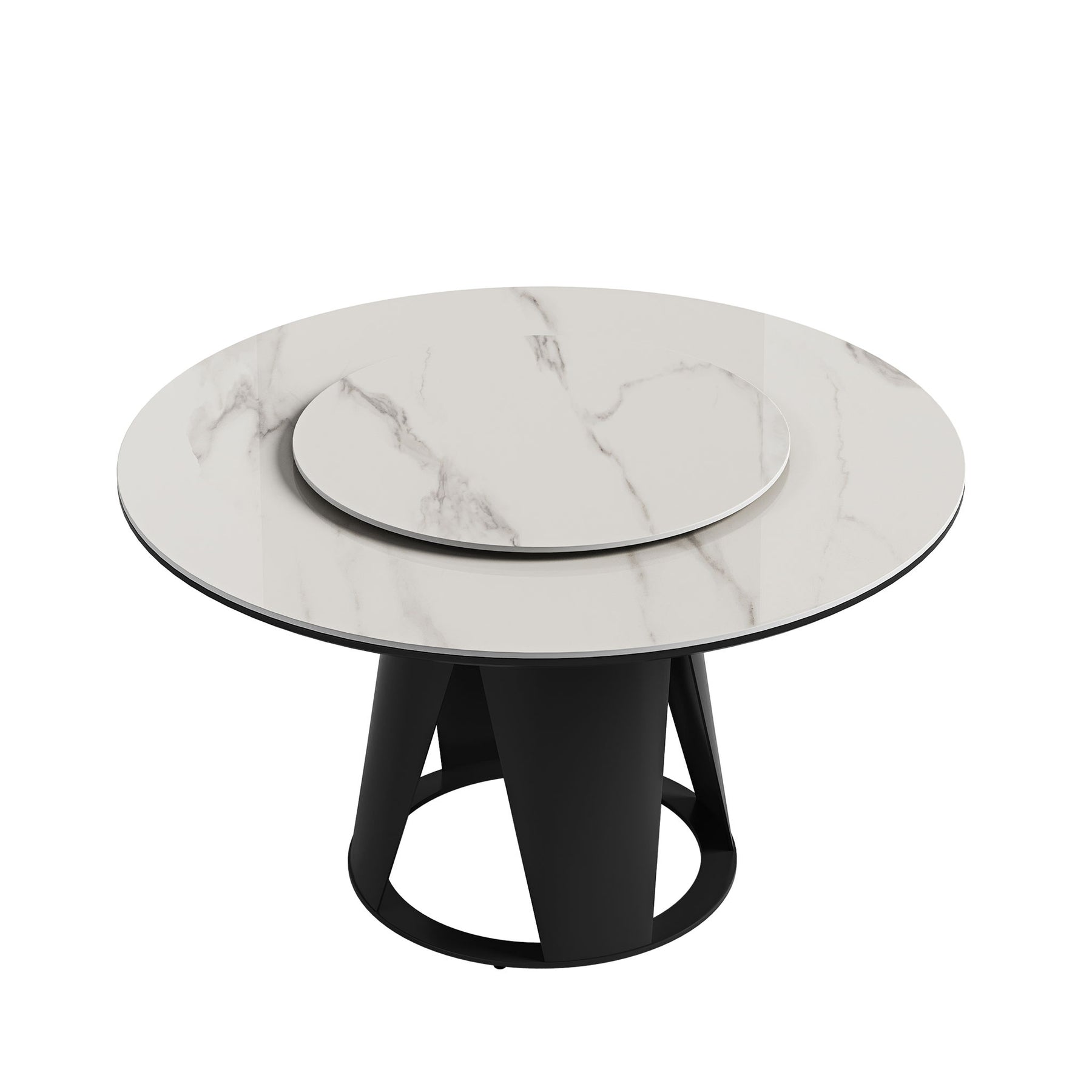 Modern 59'' Sintered Stone Dining Table With Round Turntable And Metal Pedestal 6 Person Set - White