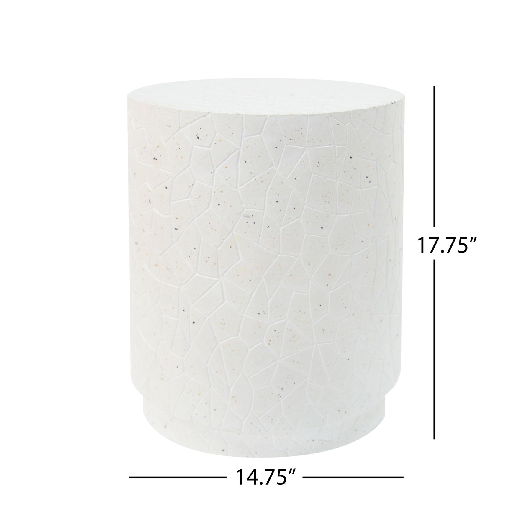 Outdoor Terrazzo Concrete Drum End Table, Living Room Accent Table - White Terrazzo