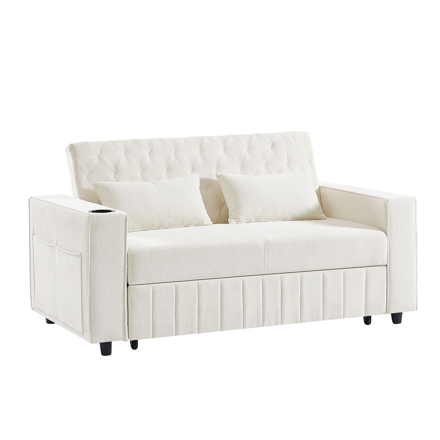 Pull Out Sofa Bed Convertible Couch Loveseat Sofa Modern Sleeper Sofa With Adjustable Backrest For Living Room - Beige