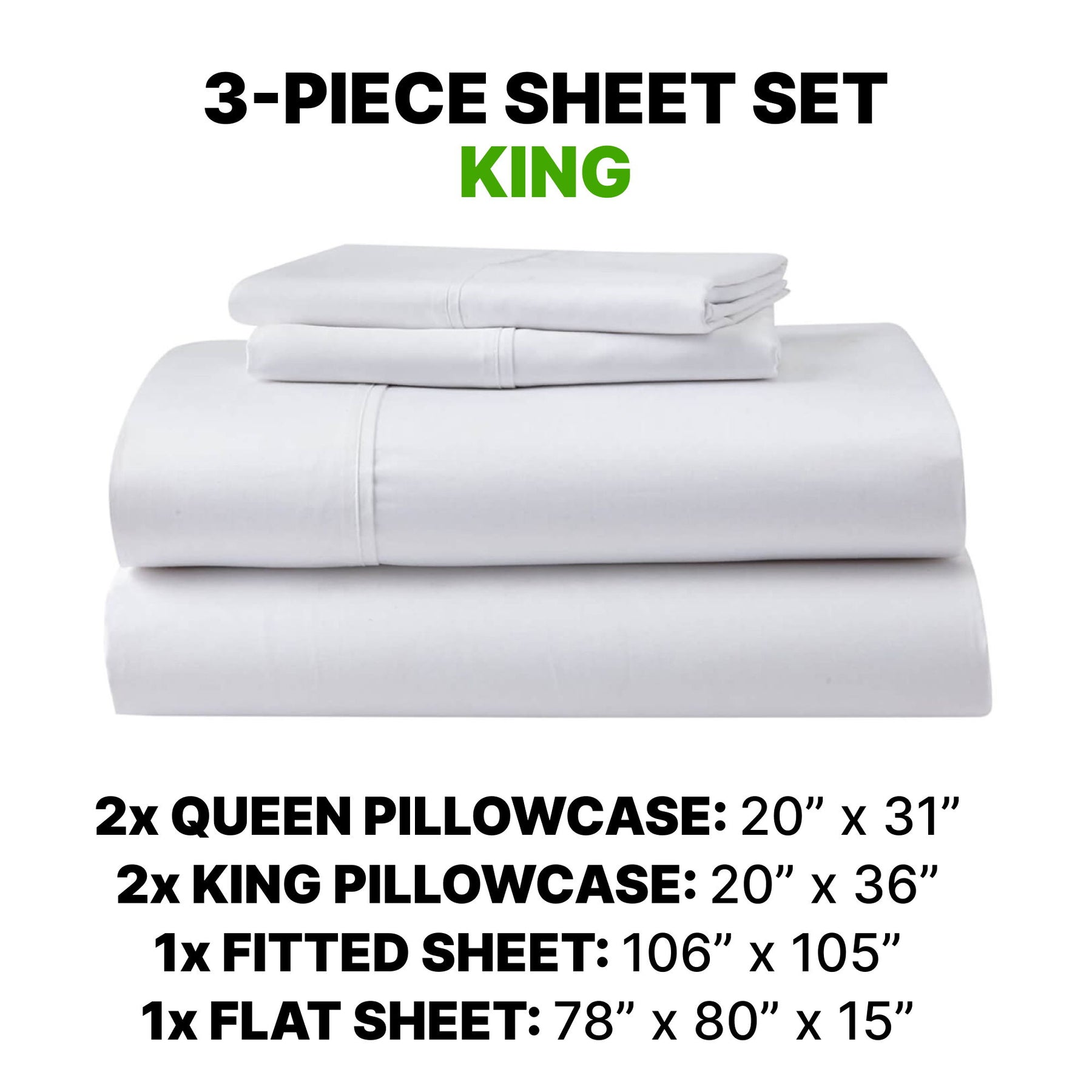 Sheet Set King Luxury Supima Cotton And Tencel Blend, Wrinkle Resistant, Breathable, With 2" Ghostgrip Band - White