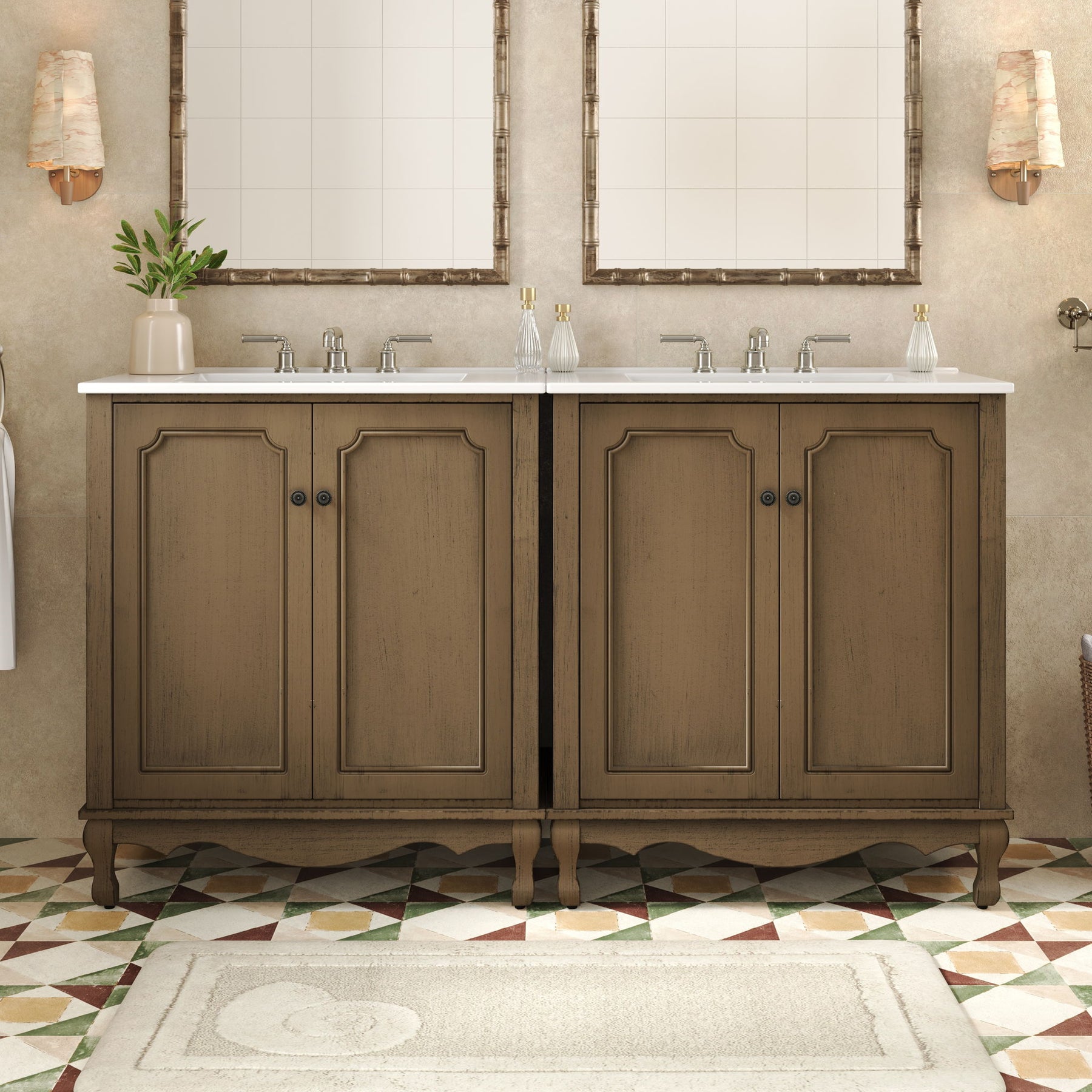 Double Sinks Bathroom Vanity Set, Vintage Bathroom Cabinet With 2 Separate Sinks - Antique Brown