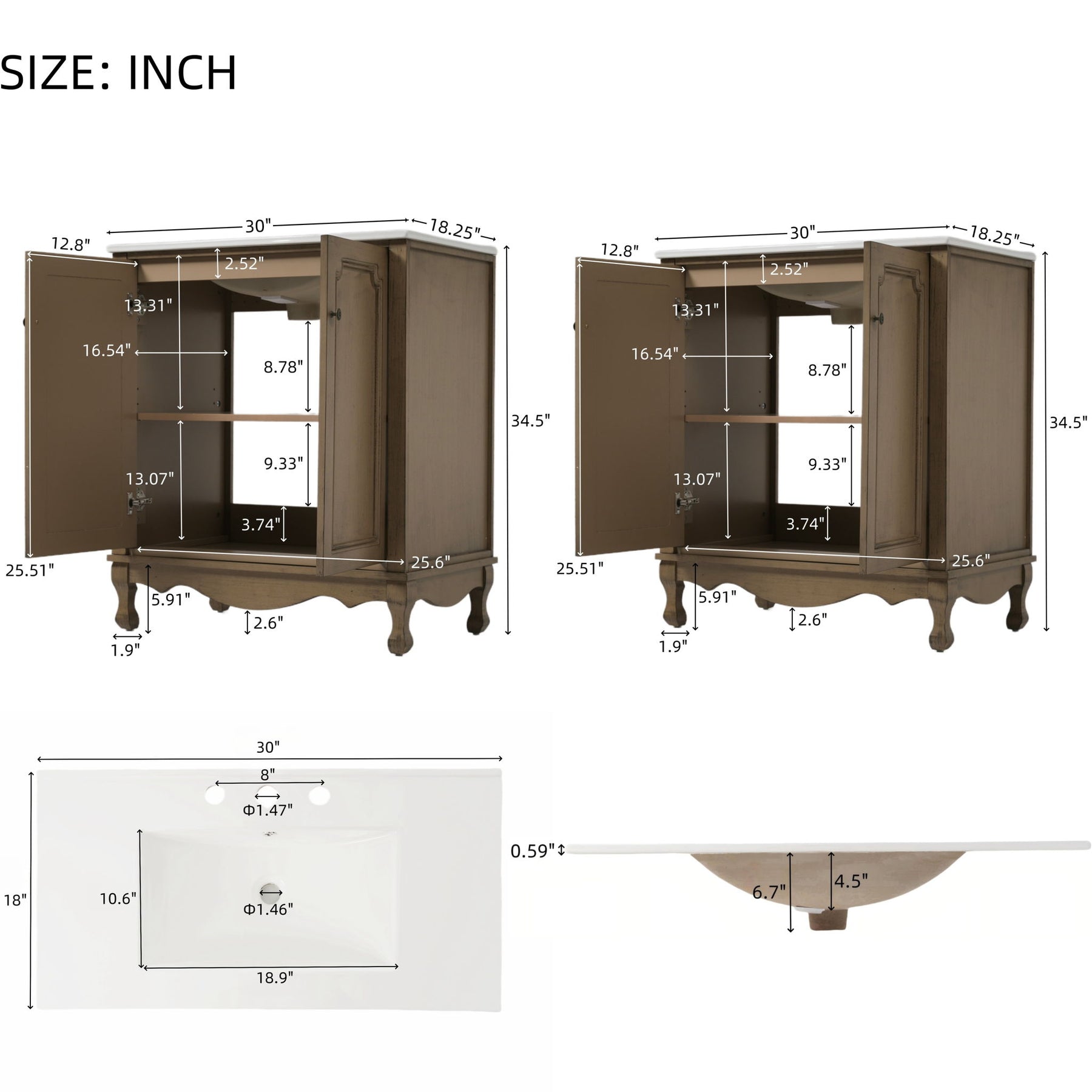 - Seamless Cohesive Vintage Charm: Matching 30-inch vanities with identical antique knobs and weathered finish create a unified retro look when combined.