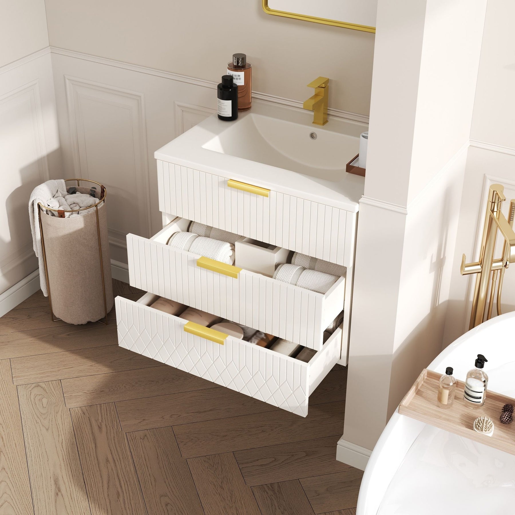 Wall Mounted Floating Cabinet With Double Drawer, Rectangular Sink, Bathroom Vanity With Single Faucet Hole And Overflow - White