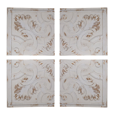 Distressed Wooden Square Wall Panels (Set of 4) - White