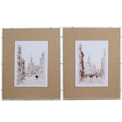 European Cities Watercolor Framed Prints (Set of 2) - Brown