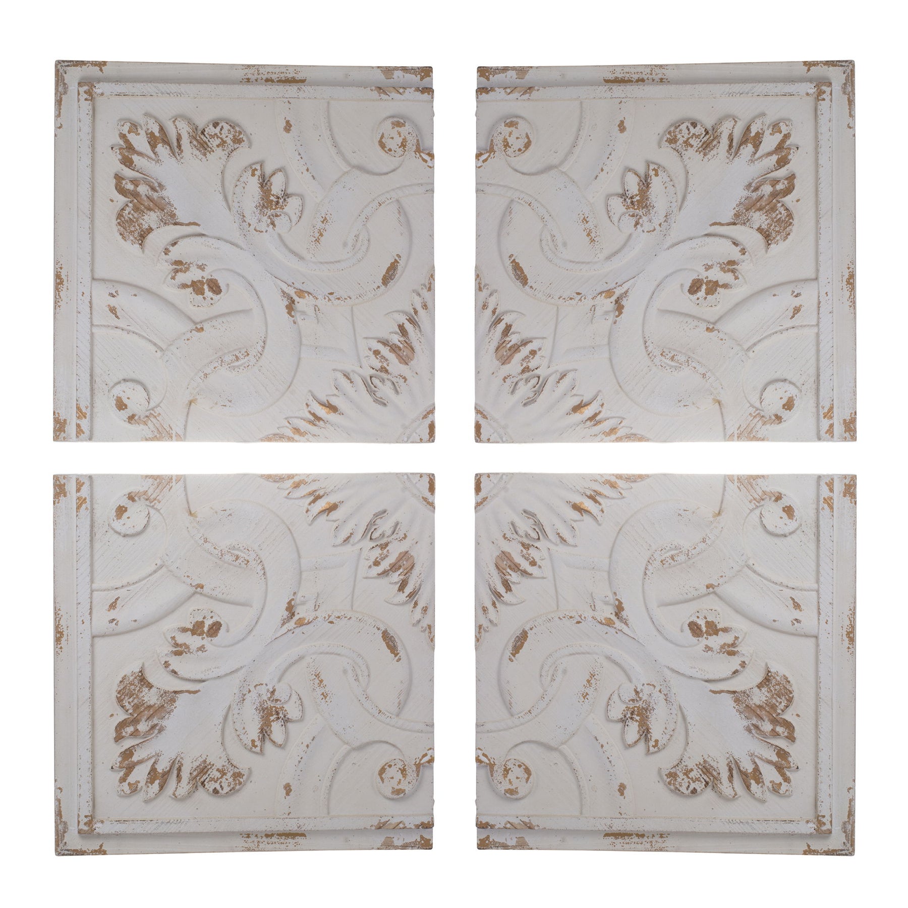 Distressed Wooden Square Wall Panels (Set of 4) - White