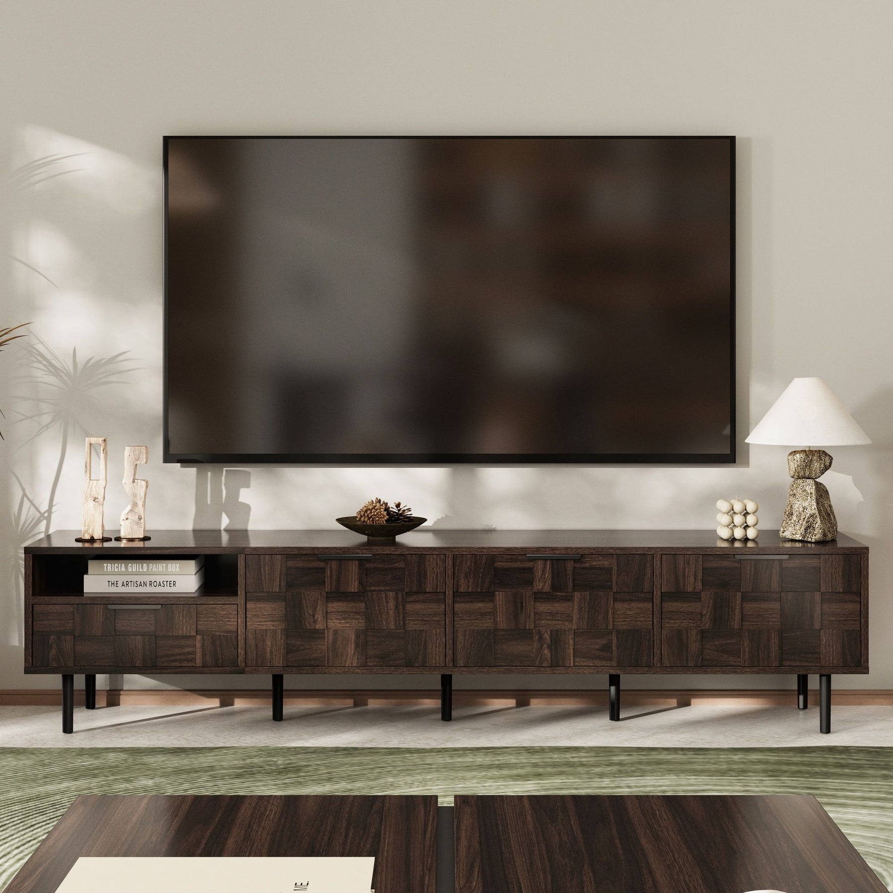 - Ample and Organized Storage: Three soft-closing cabinets, one deep drawer, and an open shelf offer flexible space for media essentials.