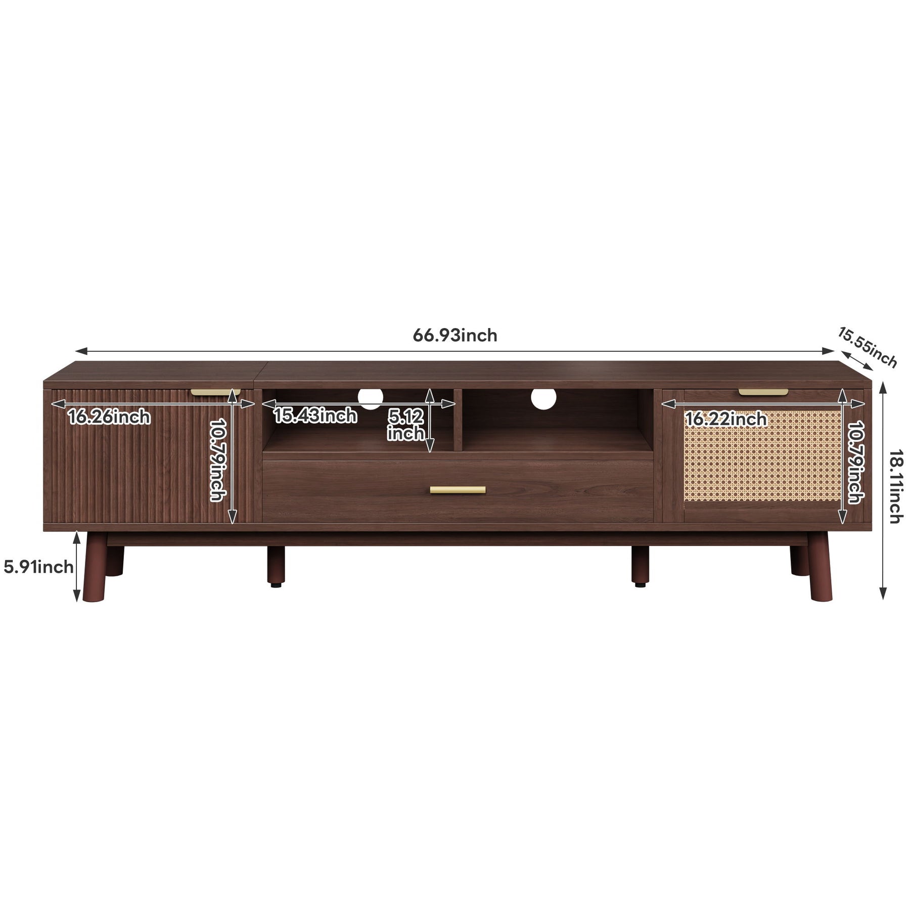 TV Stand For 75" TVs With Soft Closing Doors, Console With Accents And Drop Down Cabinet - Dark Brown