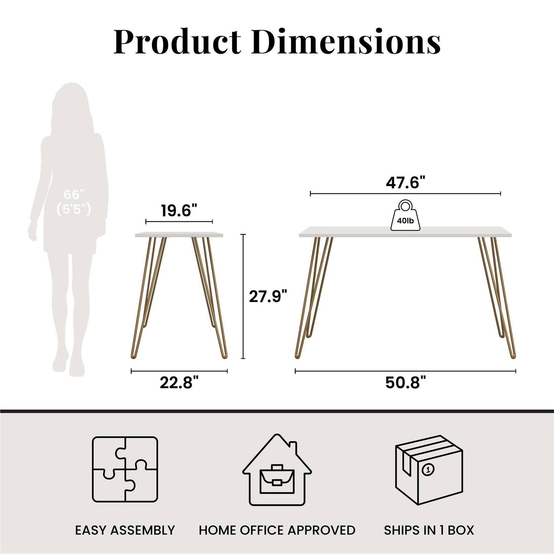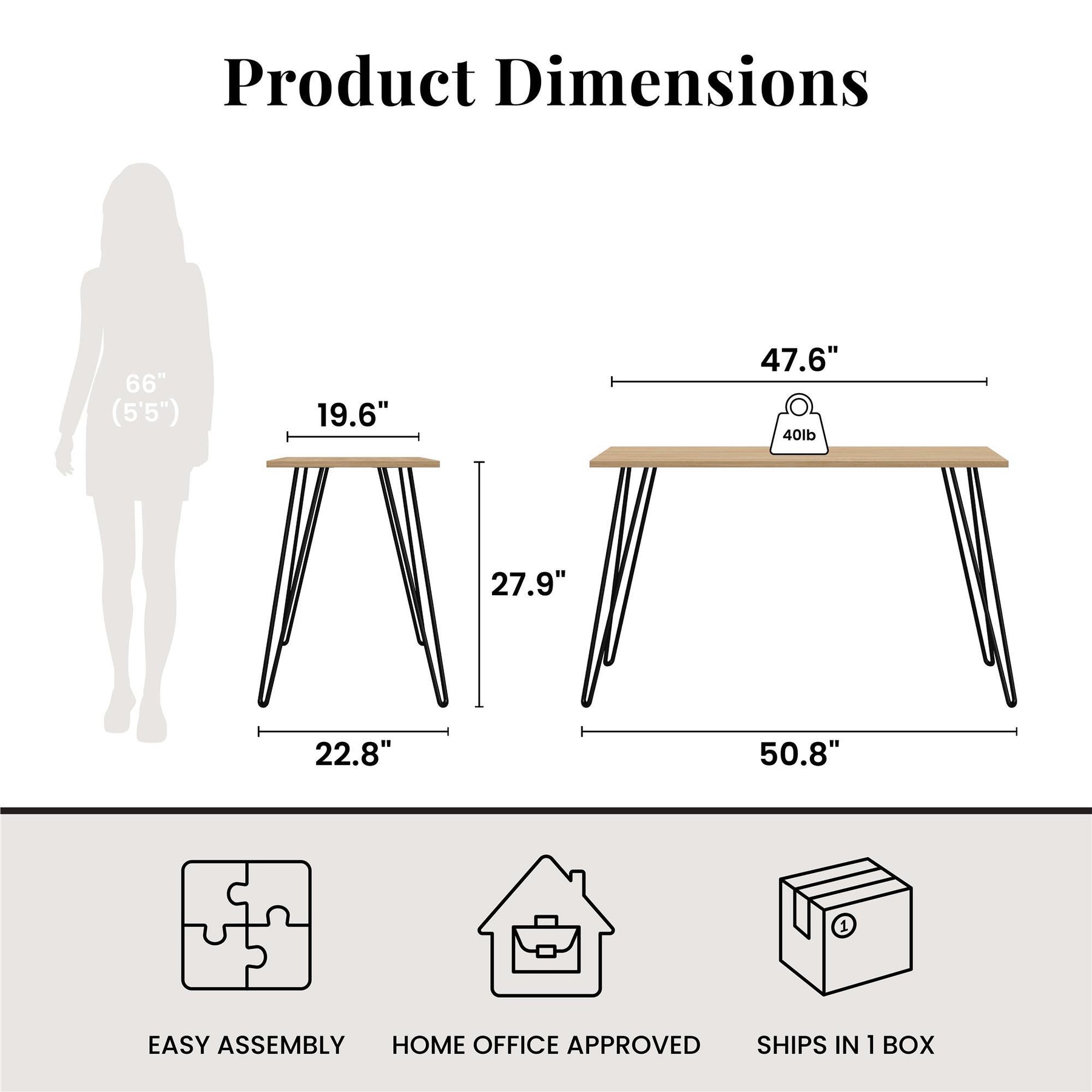 47.6"W x 19.7"D x 27.9"H - 23.0 lb