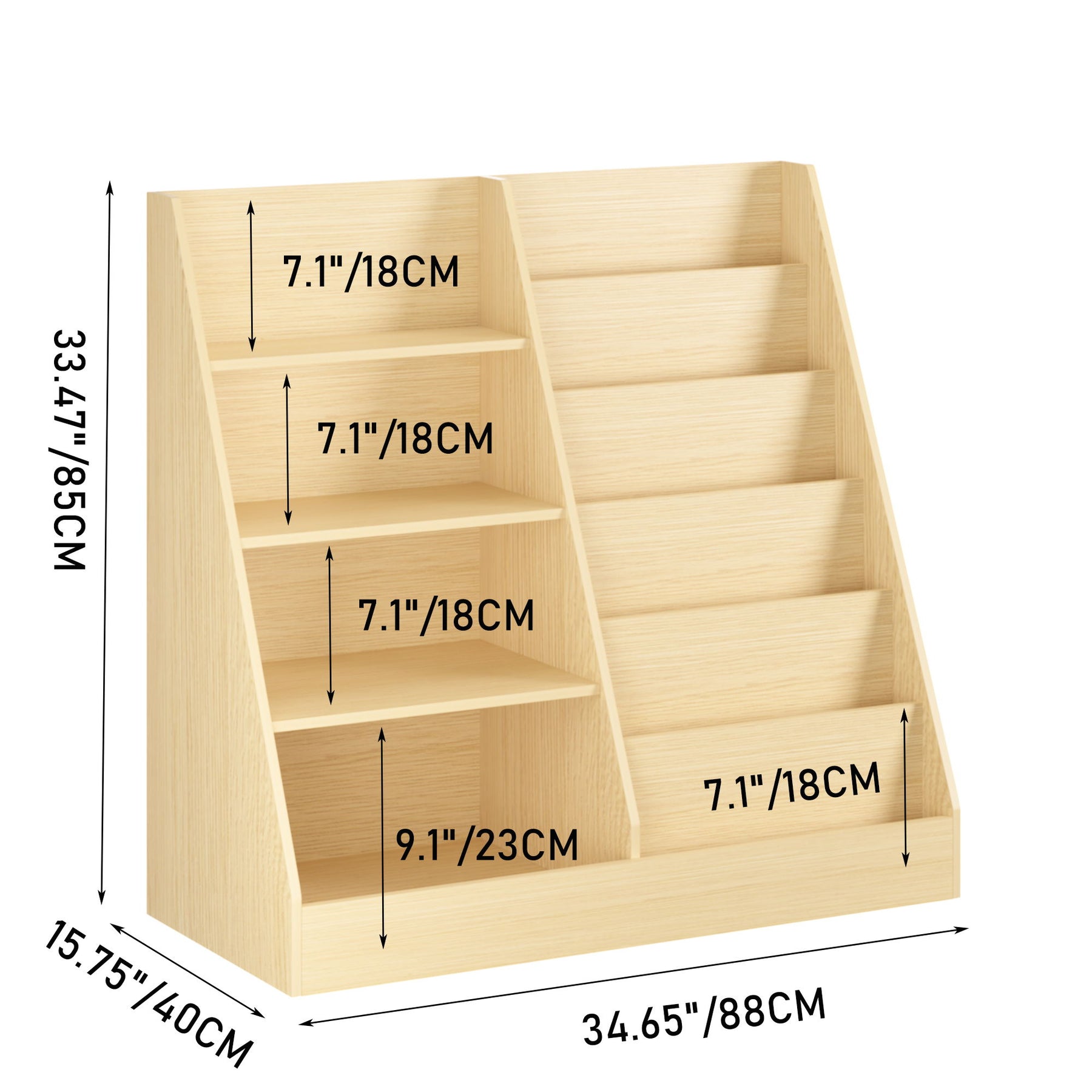 Bookshelf And Toy Storage Organizer, 4 Tier Bookcase With Display Stand For Playroom - Natural