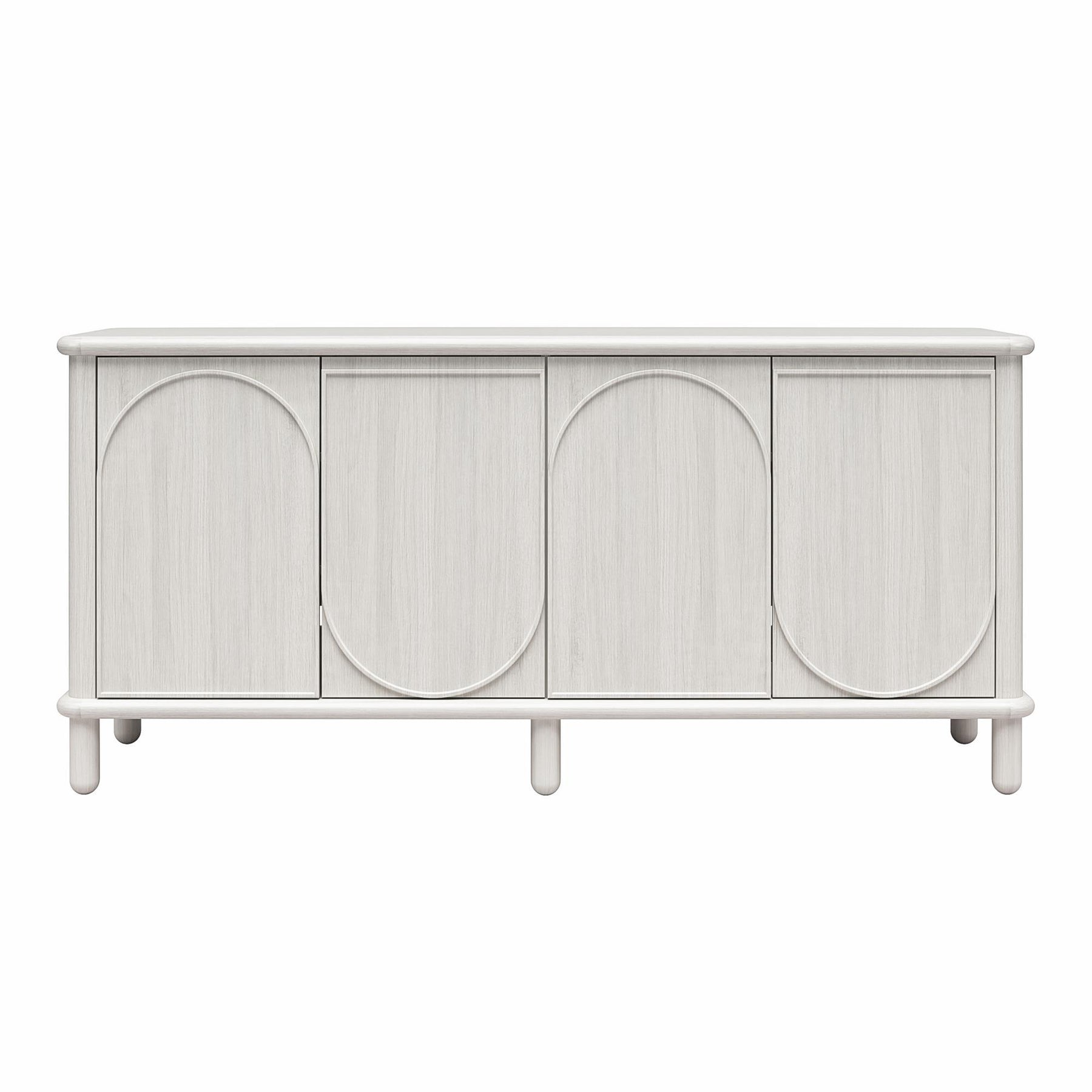 - Vintage Aesthetic: Features rounded molding and rustic whitewashed wood veneer for an eclectic, timeless appeal