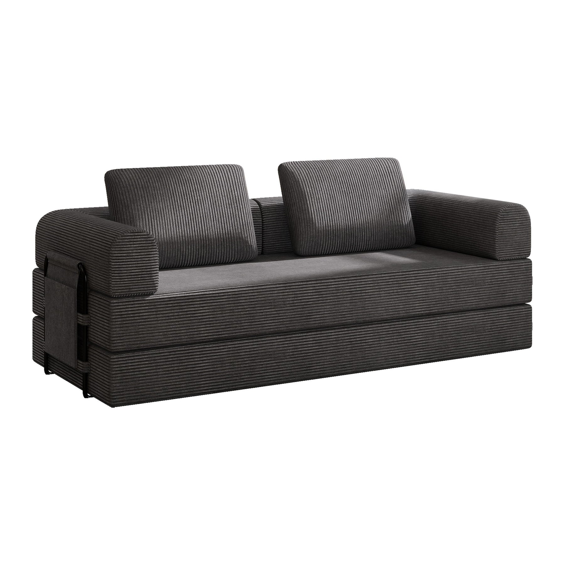 Convertible Sleeper Sofa Bed With Cylindrical Pillow Folding Mattress Couch With Fixed Shape Frame For Living Room - Dark Gray