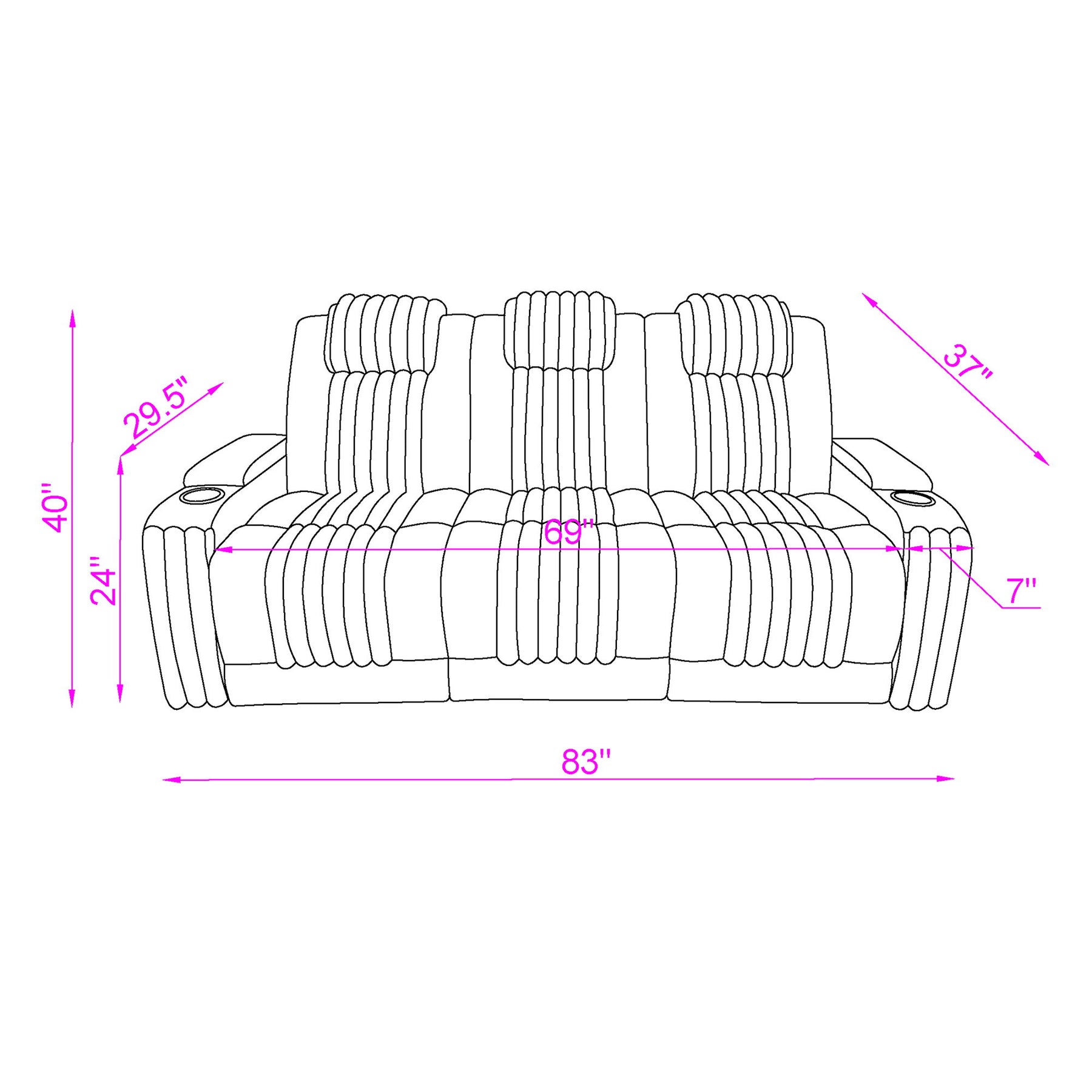 Duran - Power Reclining Sofa, LED Light And Drop Down Table - Black