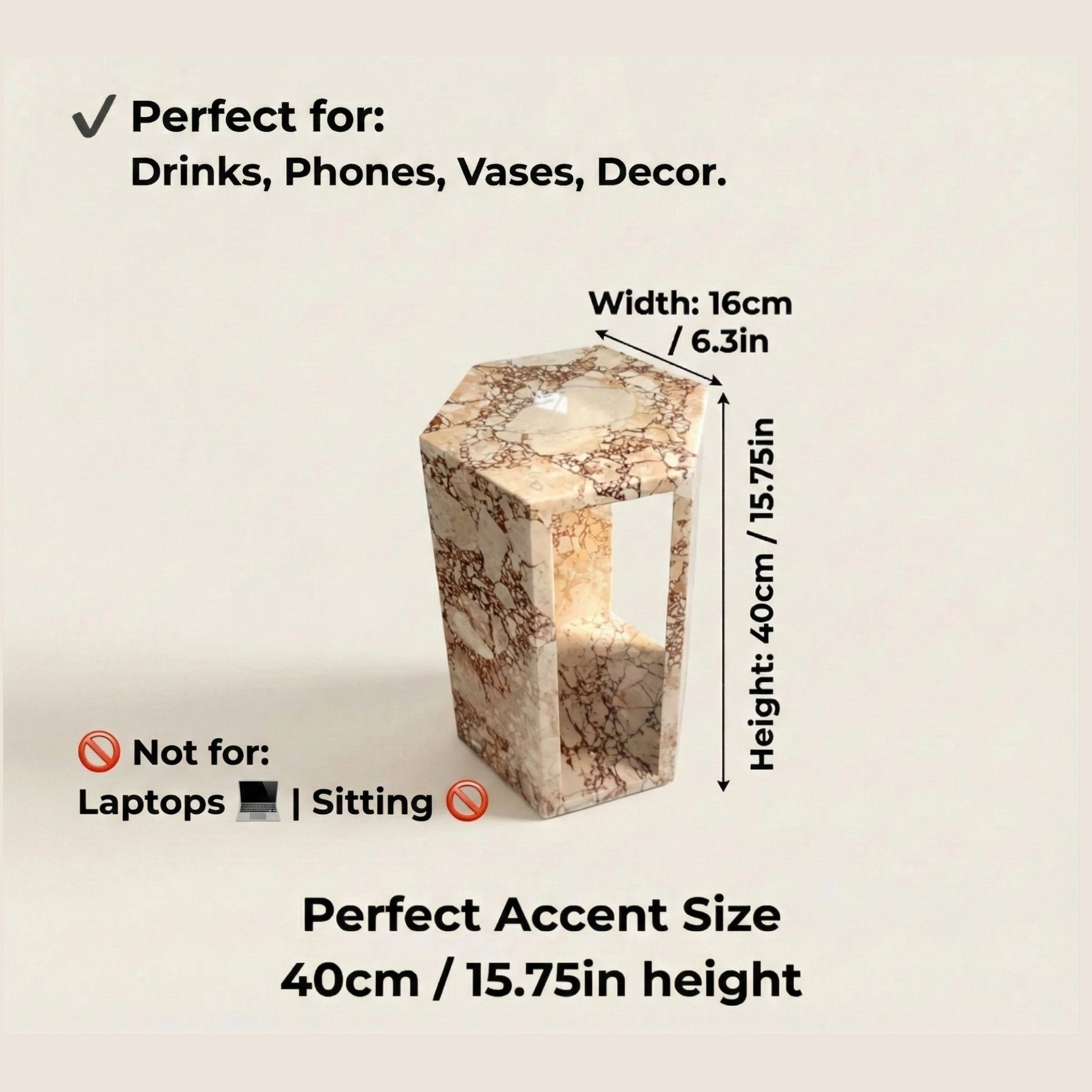 - Architectural Hexagon Design: Hollow-centered prism shape adds structural elegance and negative space appeal
