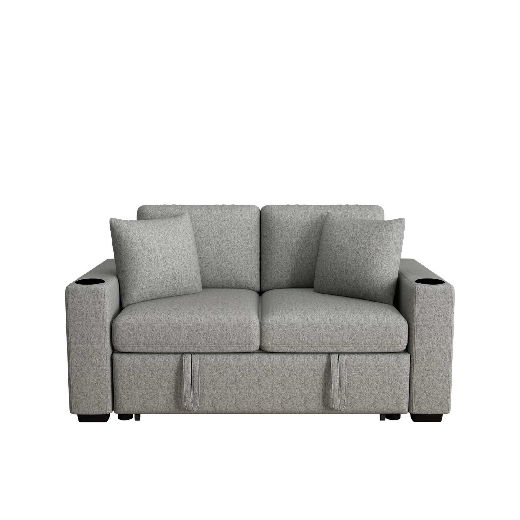 2 Seater Loveseat Sofa With Pull-Out Bed, Built-In USB Ports & Cup Holders - Gray