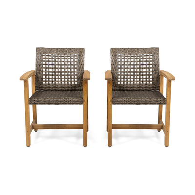 Outdoor Acacia Wood Patio Dining Armchair (Set of 2)