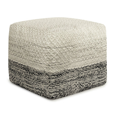 Macie - Square Woven Outdoor / Indoor Pouf - Gray / White