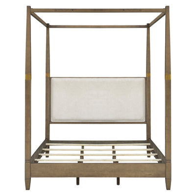 Queen Canopy Bed Frame With Upholstered Headboard - Brown