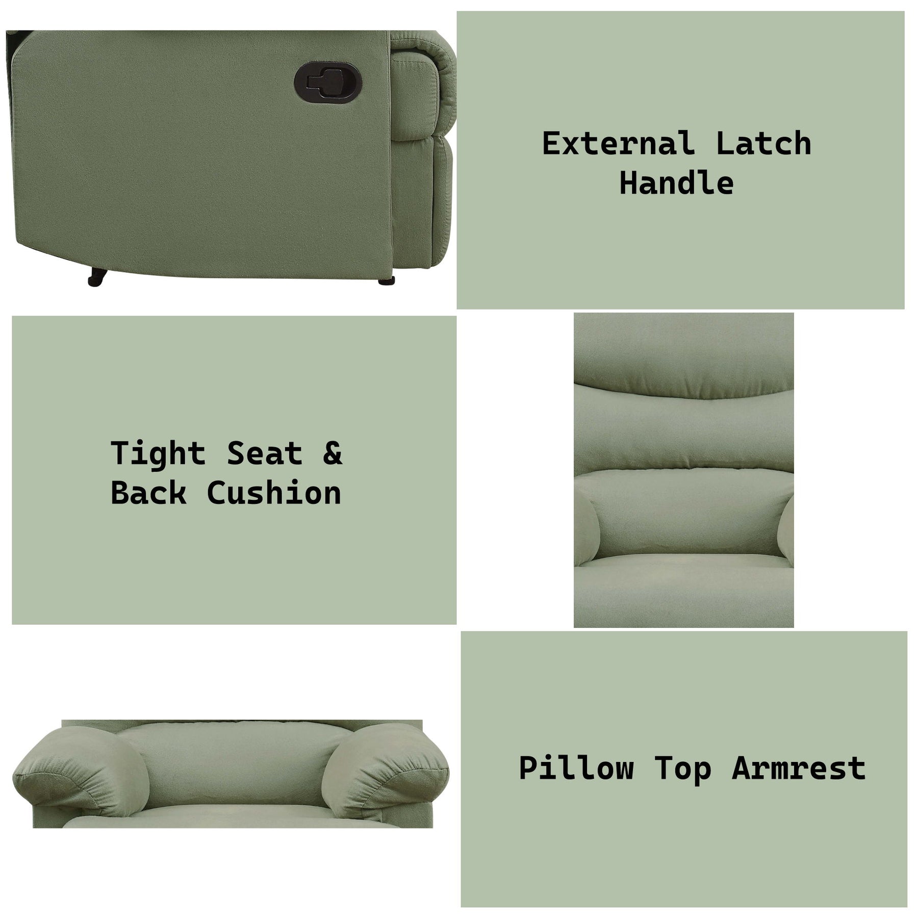 - Functional Features: An external latch handle adds a functional and stylish element, ensuring smooth operation while maintaining the recliner’s sleek, contemporary look.