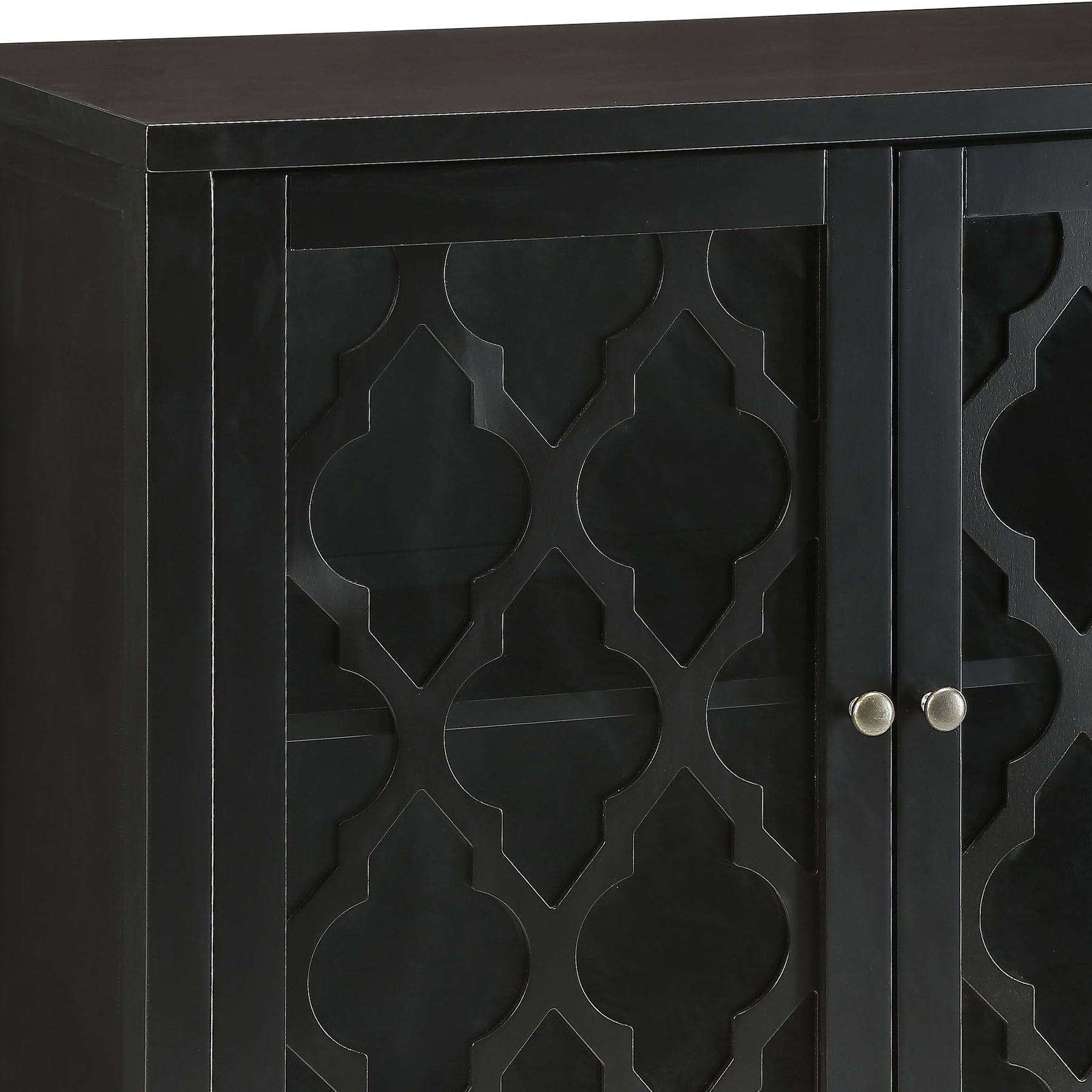 - Elegant Design: This console table showcases a sleek black finish and a clean, rectangular design, adding a touch of sophistication to any room. Its elegant appearance is complemented by two glass doors, offering a modern yet timeless appeal.