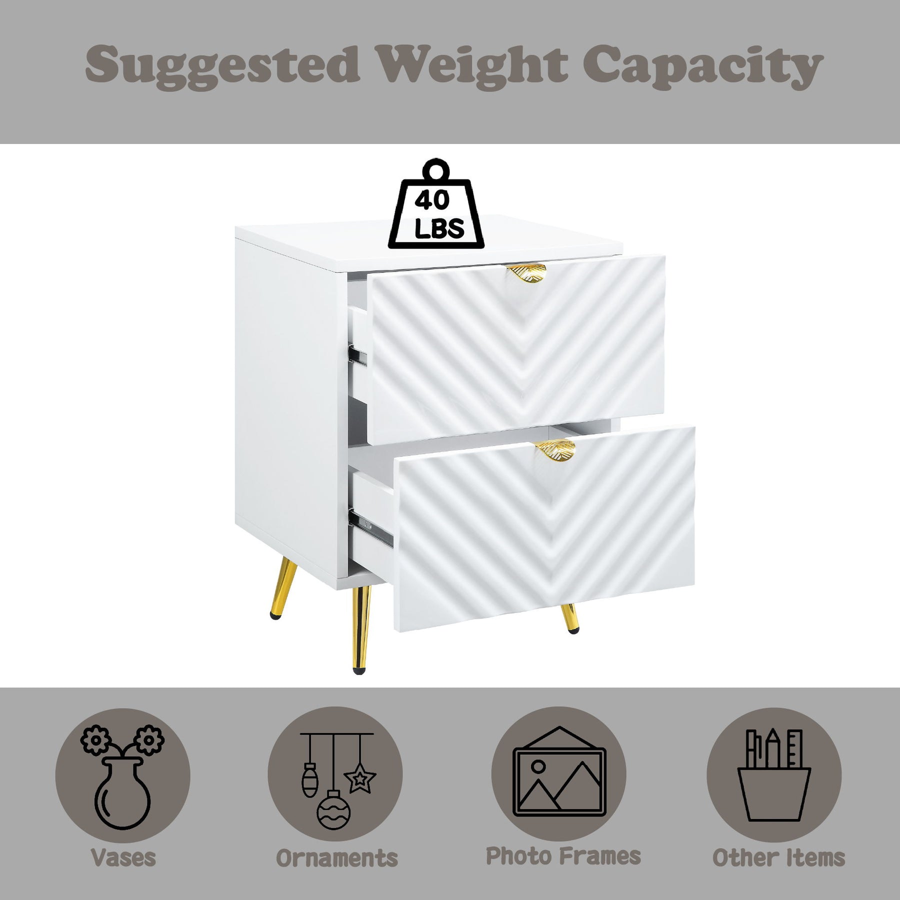 - Sturdy Construction: With metal side drawer glides and a weight limit of 66 lbs on the top and 20 lbs per drawer, this nightstand offers both functionality and stability.