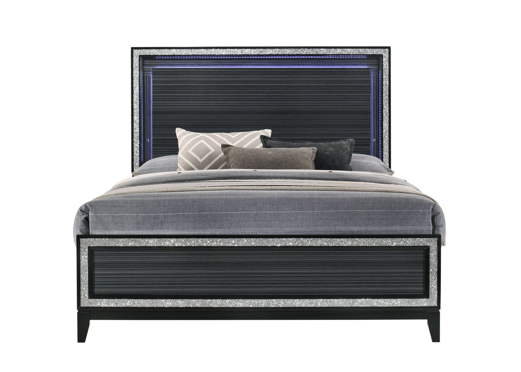 - Elegant Design: Features an integrated LED-lit panel headboard with shimmering silver accents, adding a luxurious and modern touch to your bedroom.