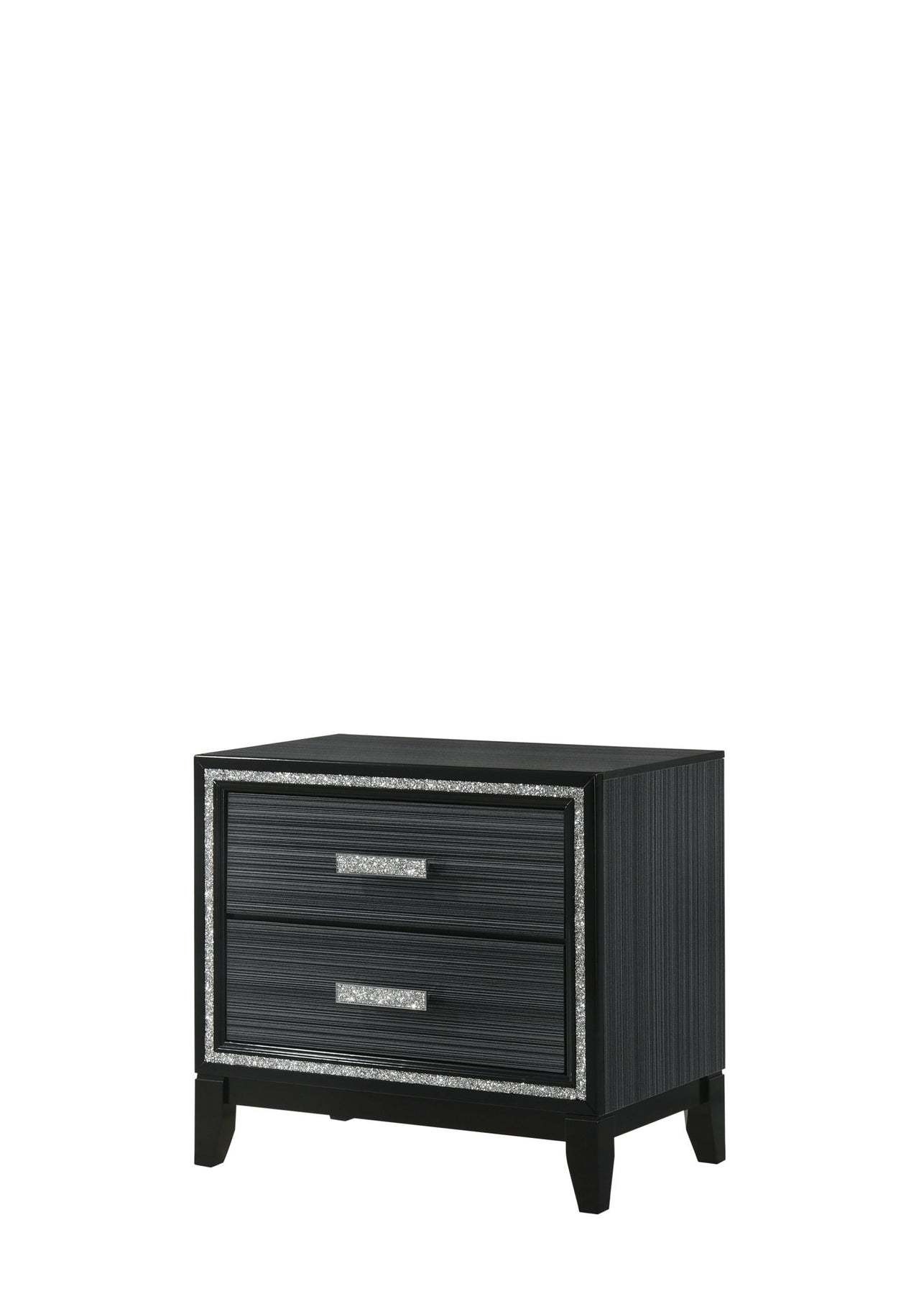 • Elegant Design: This nightstand combines timeless craftsmanship with modern elegance, featuring a sleek design that effortlessly elevates any bedroom decor. The shimmering silver trim accent adds a touch of glamour and sophistication.