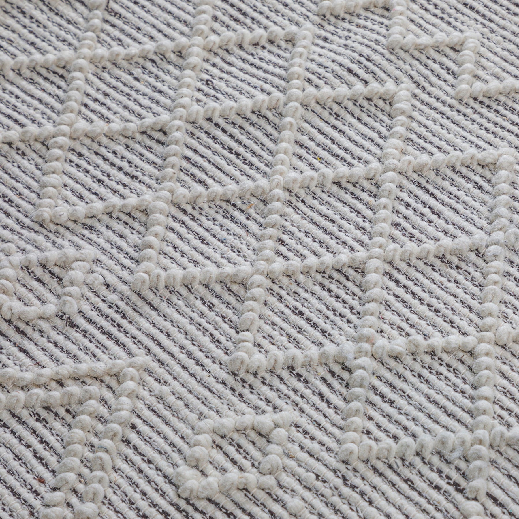 - Design and Colors: This rug features a detailed diamond pattern, complemented by a hand-knotted fringe, offering a stylish and elegant appearance.