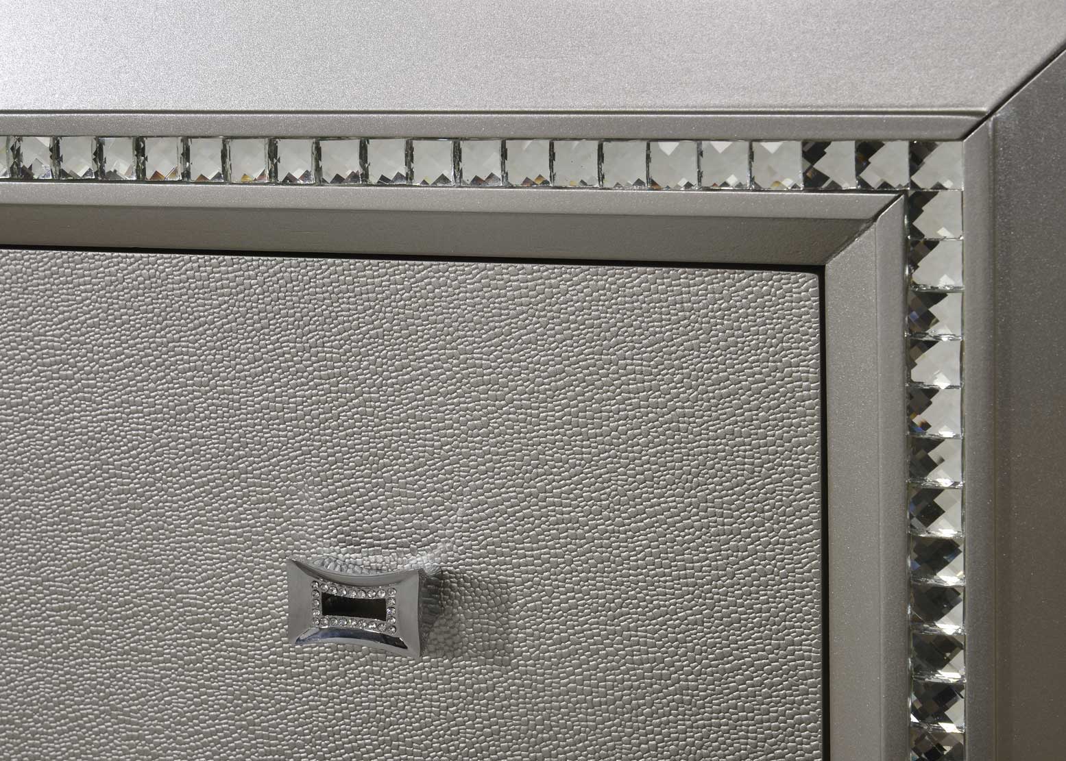 • Stylish Design: The bed features an elegant arched headboard with PU leather upholstery and channeled tufting. It is enhanced with a rectangular low-profile footboard that boasts crystal-like sparkling trim and embossed texture fronts, adding a touch of sophistication to any bedroom.