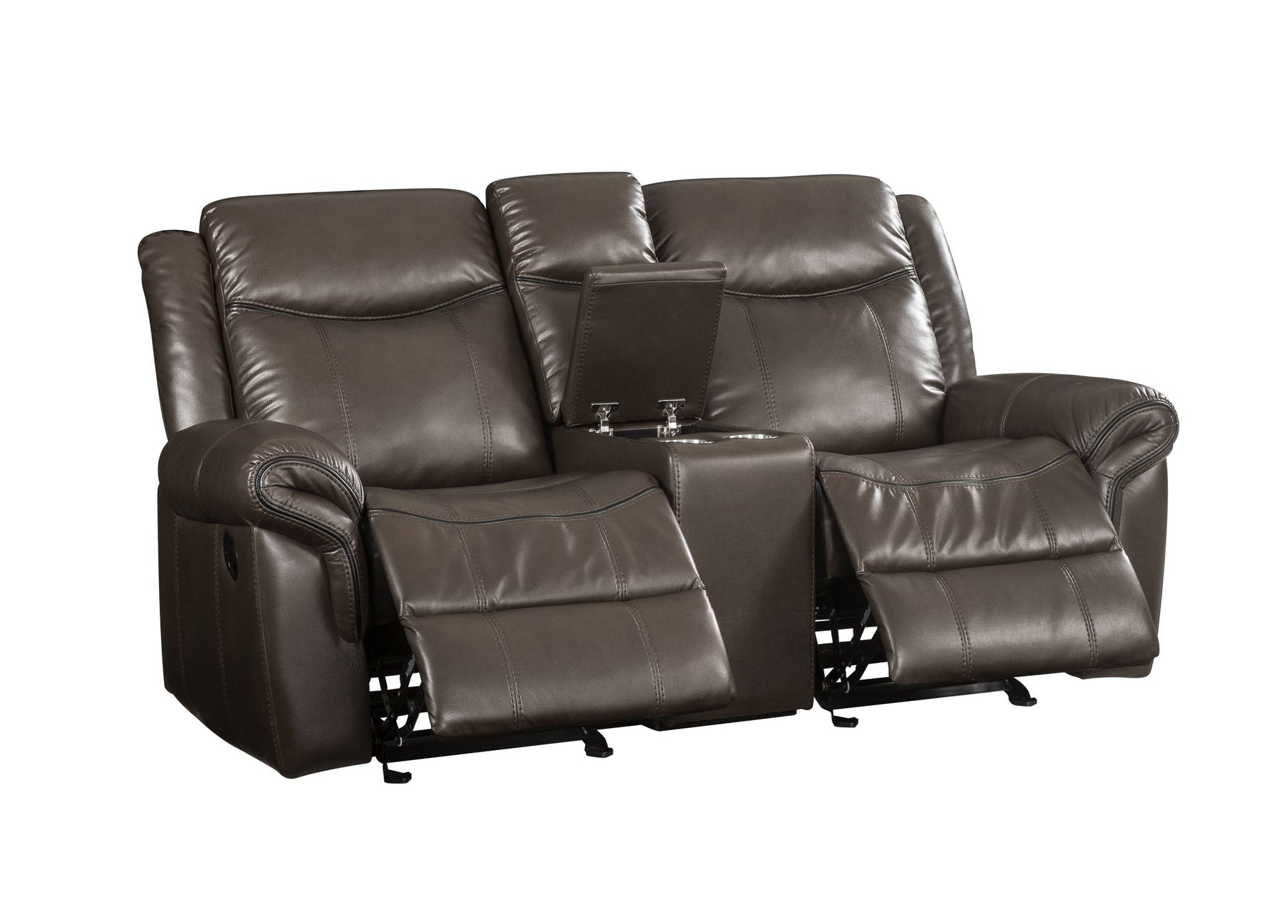 Lydia - Leather Aire Motion Loveseat With USB Console - Brown