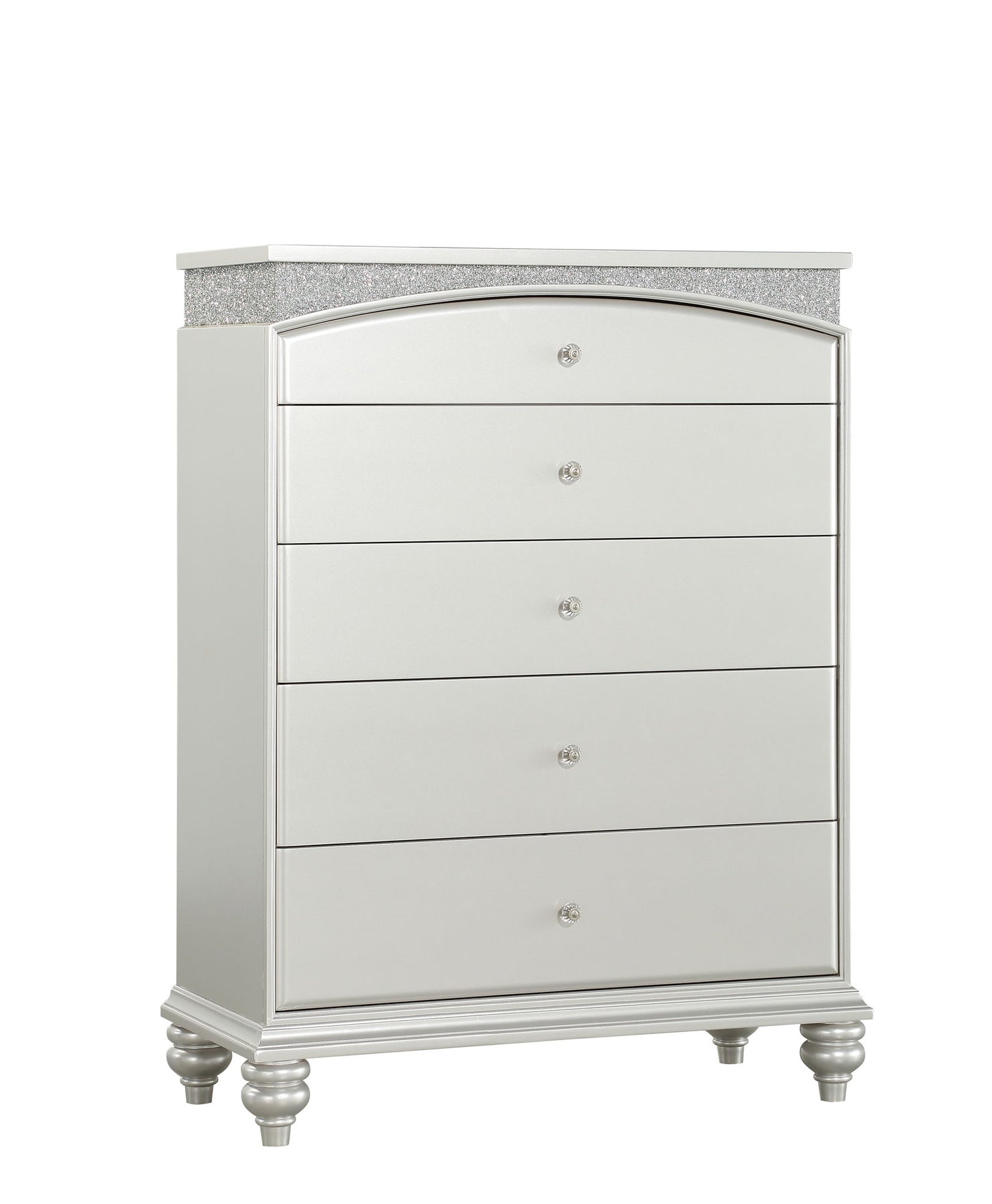 - Ample Storage: This platinum chest features five spacious drawers, offering plenty of storage space while enhancing your bedroom's decor with its elegant design.