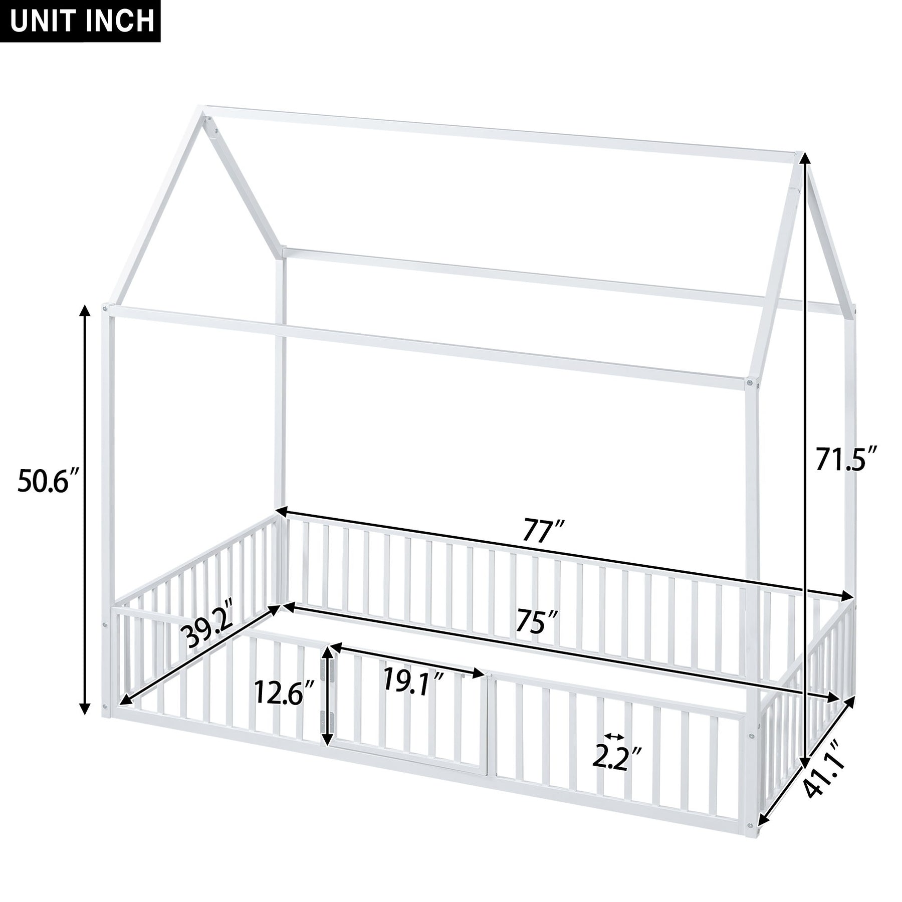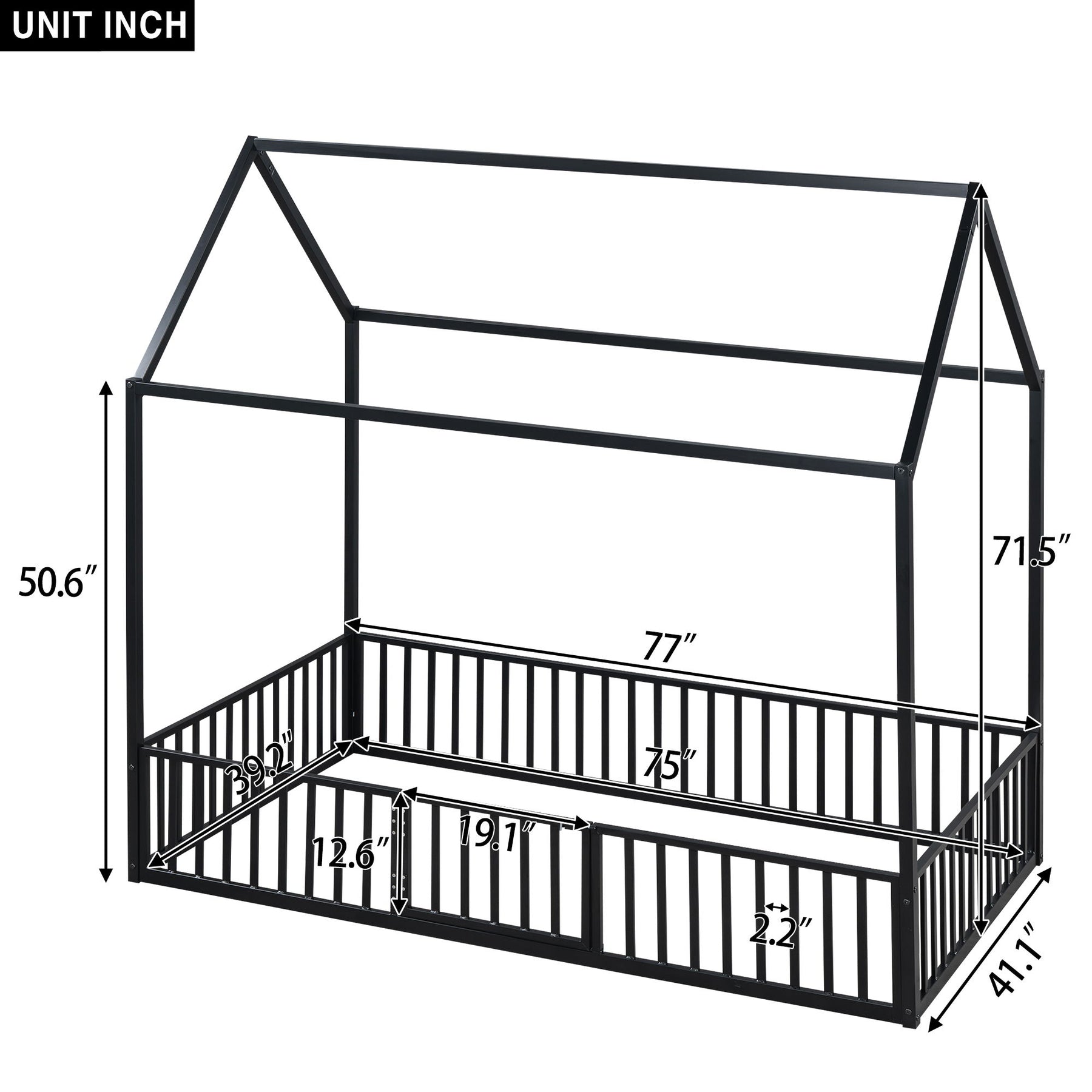 • [House-Shaped Design]: This bed features a classic house shape with a whimsical sky roof, creating a magical bedroom environment.
