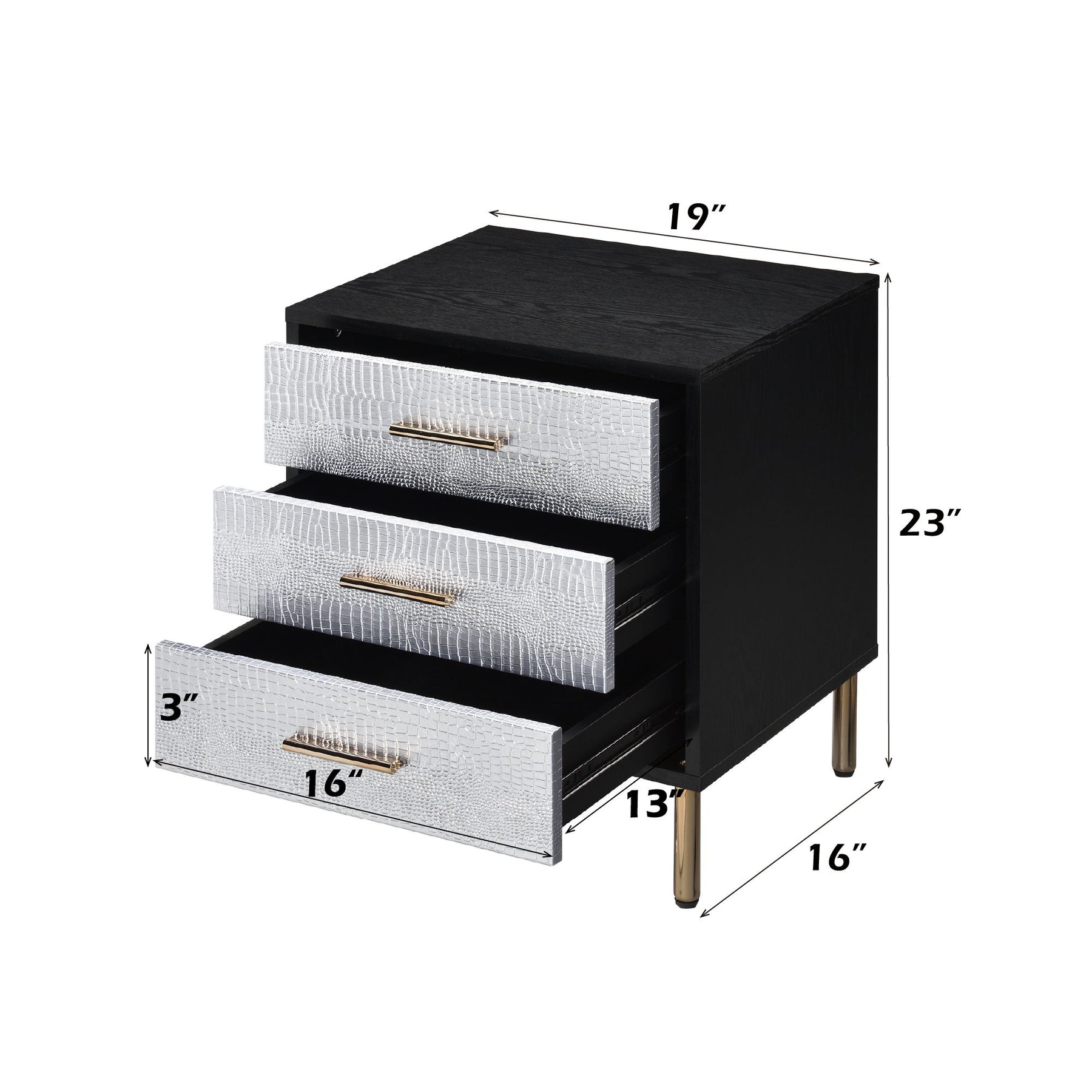 Myles - Nightstand - Black / Gold / Silver
